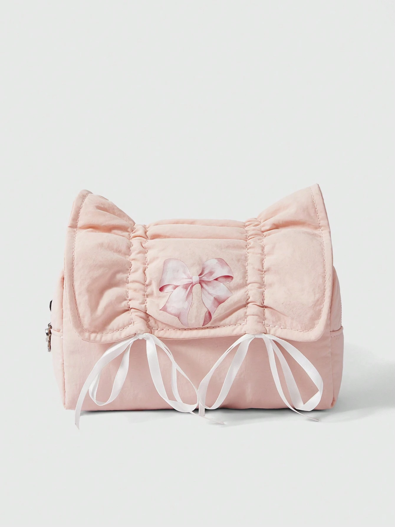 Kawaii Korean Ins Style Retro Cute Pink Drawstring Bow Large Capacity Portable Makeup Bag Pencil Case + Bow Pull Tab