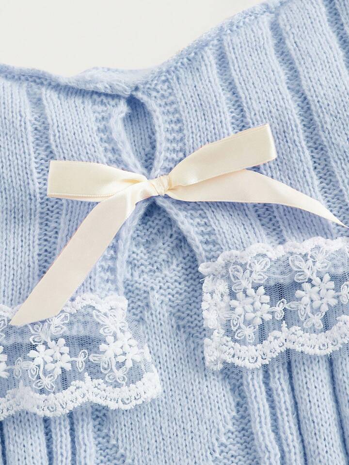 Kawaii Lace Patchwork Bow Decor Spaghetti Strap Long Sleeve Pullover Sweater