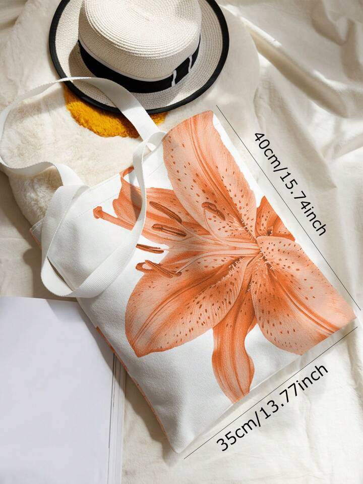 Kawaii Large Floral Pattern Double-Sided Print Shoulder Canvas Tote Bag, Versatile For Work, Travel And Vacation