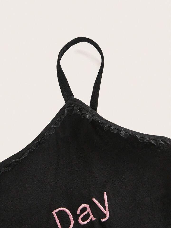 Kawaii Letter Heart Embroidery Frill Trim Lingerie Set