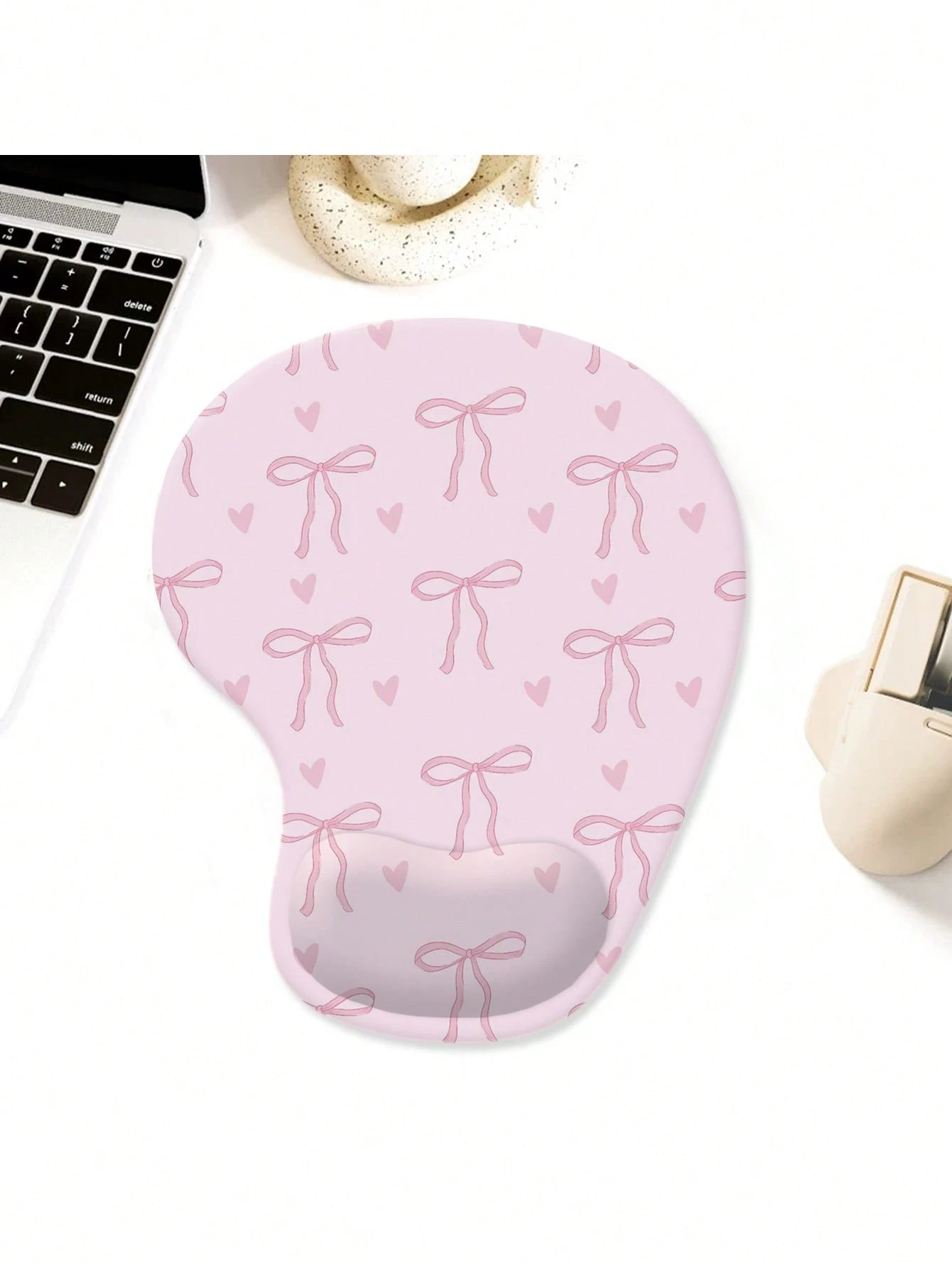 Kawaii Lovely Pink Bow & Heart Pattern Anti-Slip Waterproof Thicken Mouse Pad, 919979