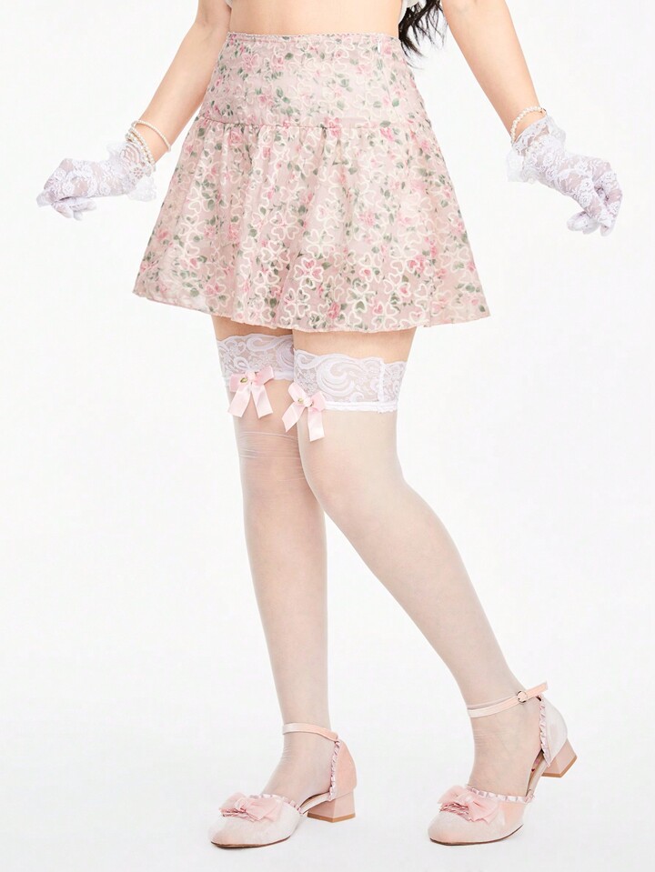 Kawaii Minimalist Sexy Style Lovely Sweetheart Pink Embroidery Jacquard Women's Mini Skirt
