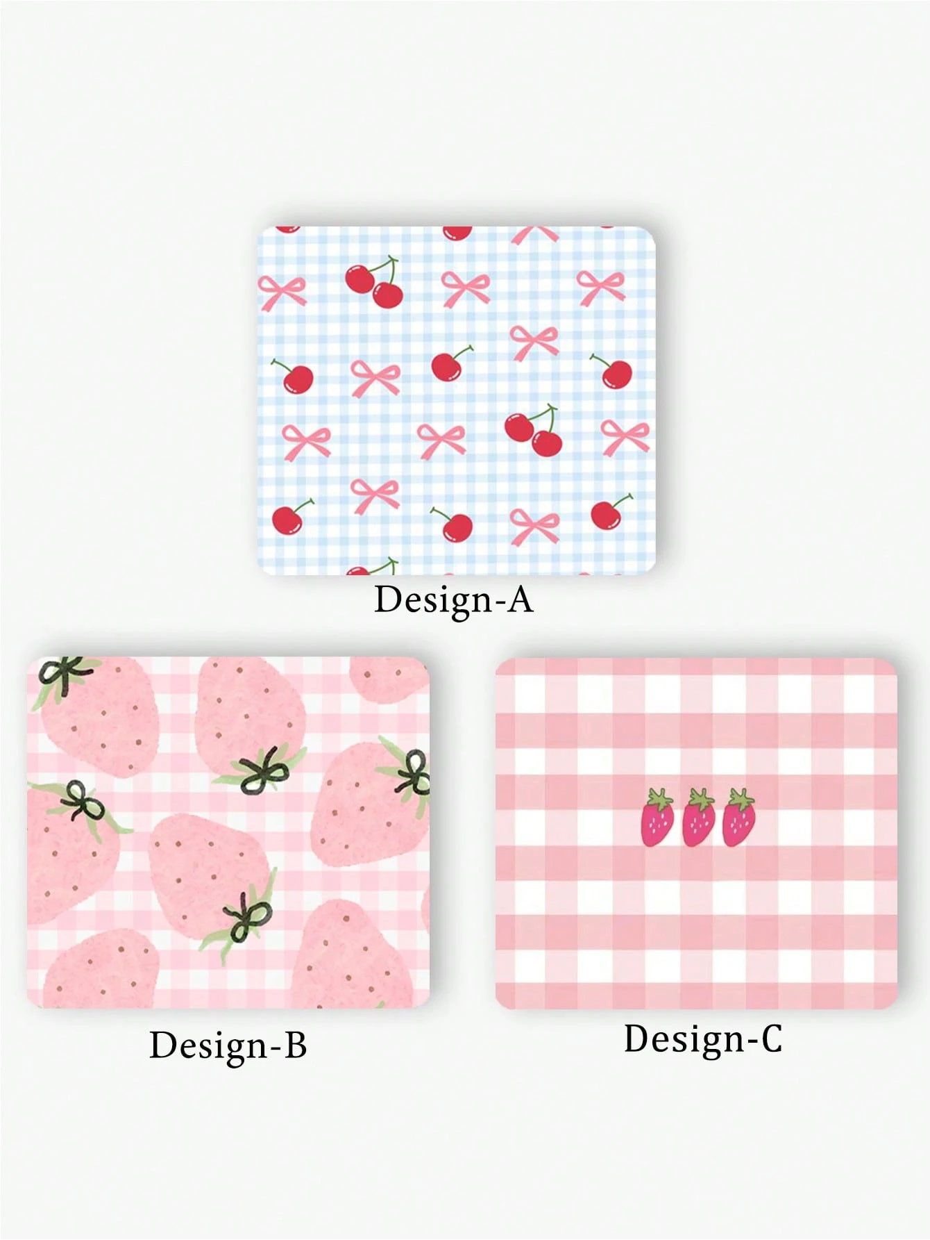 Kawaii Mousepad With Cherry, Strawberry, Bow Pattern, Anti-Slip, Waterproof, , Thickened