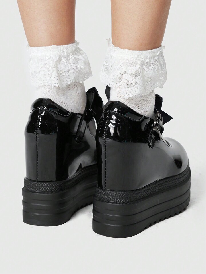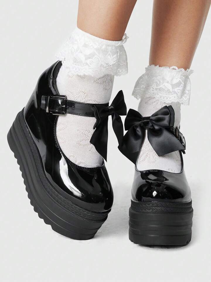 Kawaii New Fashion Shallow Round Toe Waterproof Platform Super High Chunky Heel Women Shoes, Butterfly Buckle Shoes For Spring And Autumn Spring Shoes Spring Break Easter
