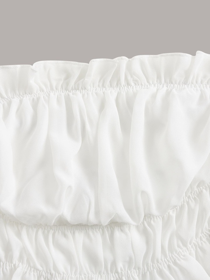 Kawaii Off Shoulder Frill Trim Flounce Sleeve Ruffle Hem Crop Blouse
