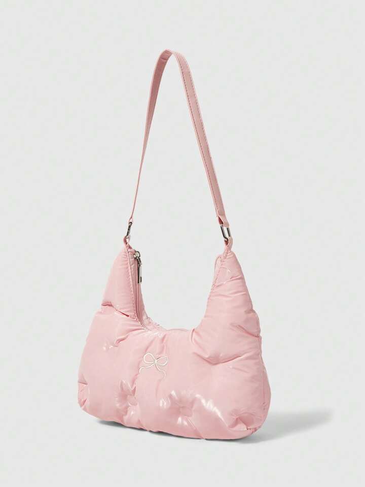 Kawaii Pink Bow Design Tote Bag, Fashion Cute Underarm Bag For Women