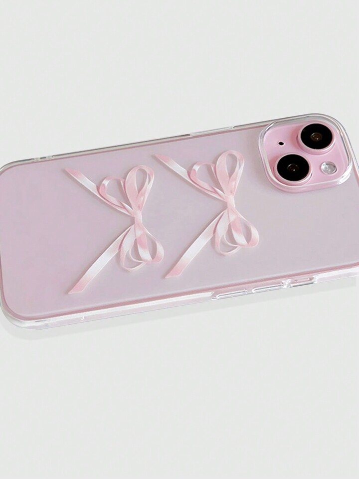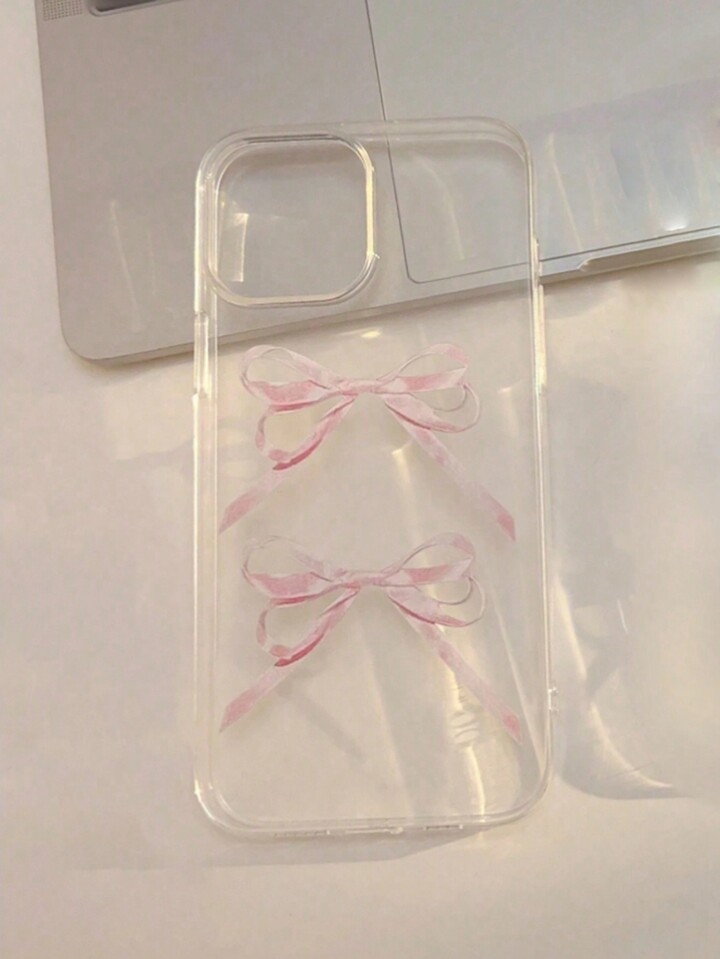 Kawaii Pink Bowknot Patterned Clear Phone Case, Compatible With IPhone 12, 13, 14 Series And Other Models