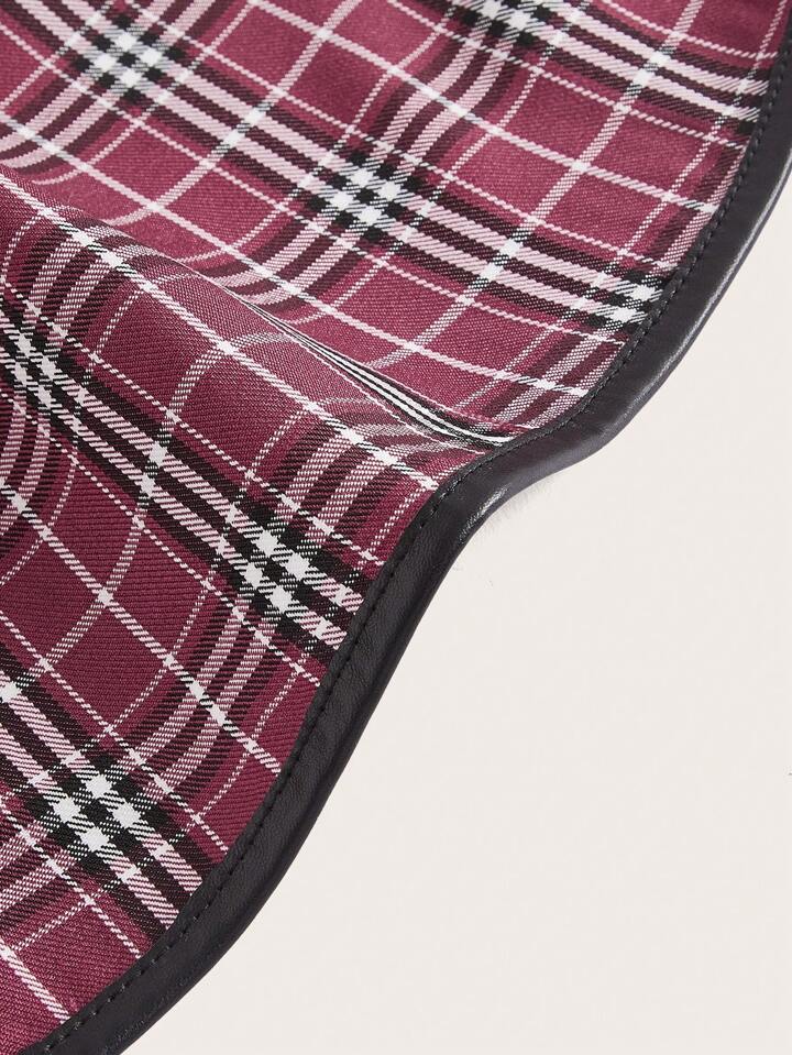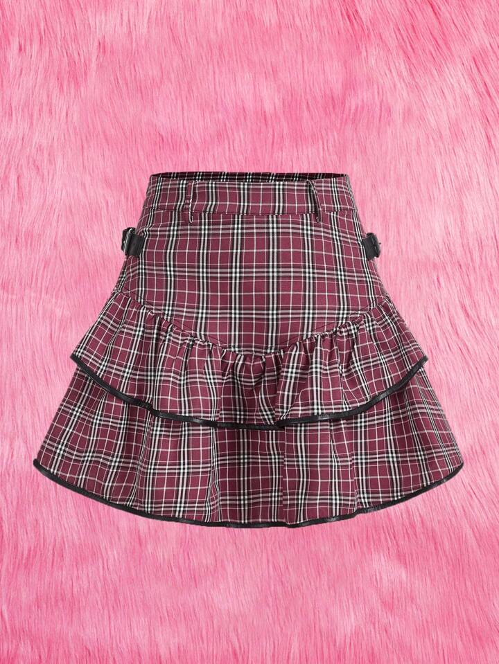 Kawaii Plaid Print Ruffle Hem Buckle Decor Skirt