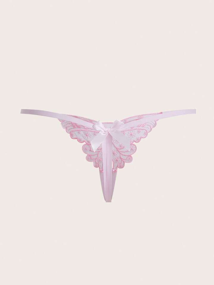 Kawaii Plus Butterfly Embroidery Thong