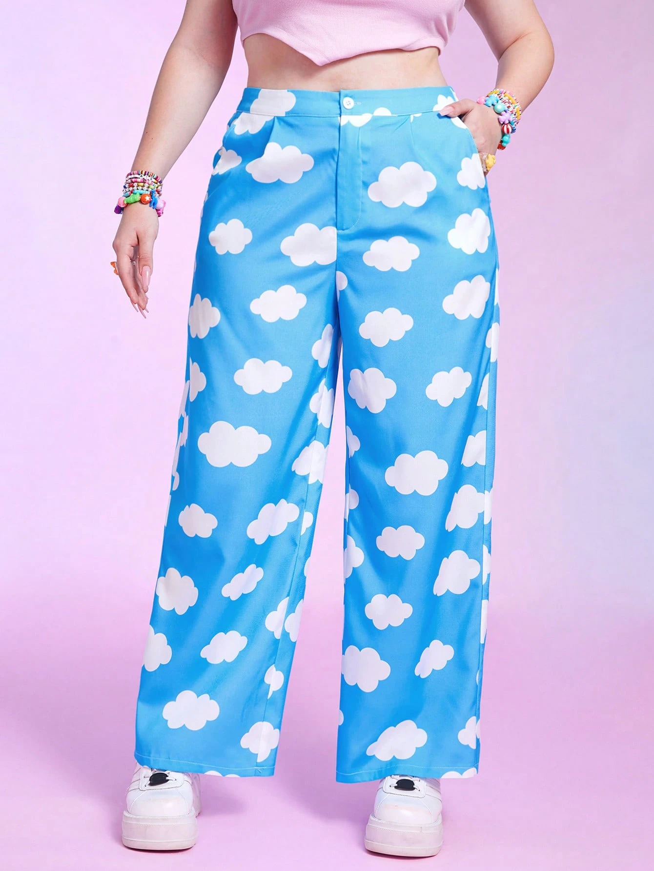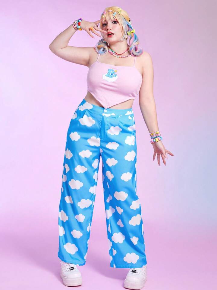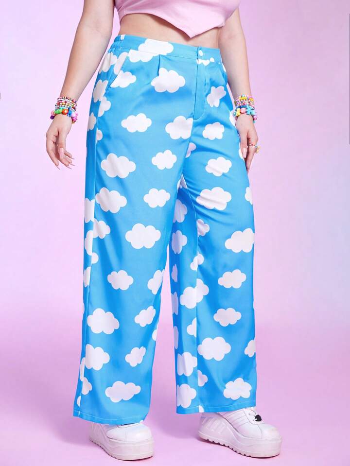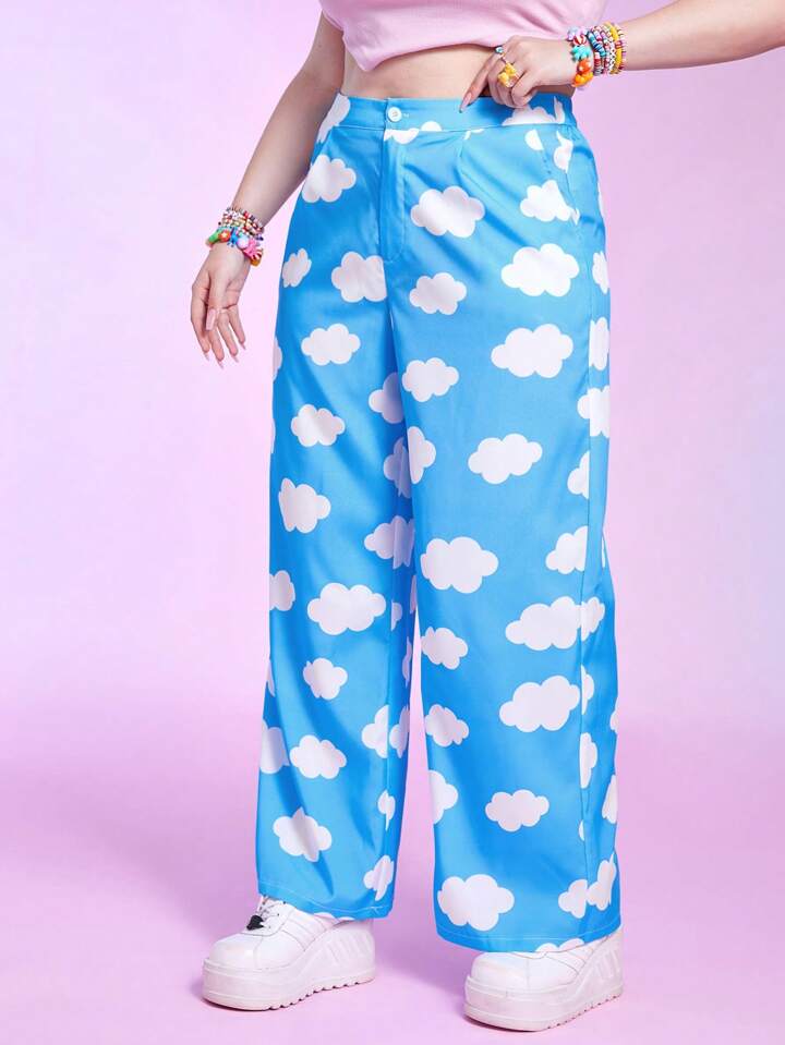Kawaii Plus Cloud Print Wide Leg Pants