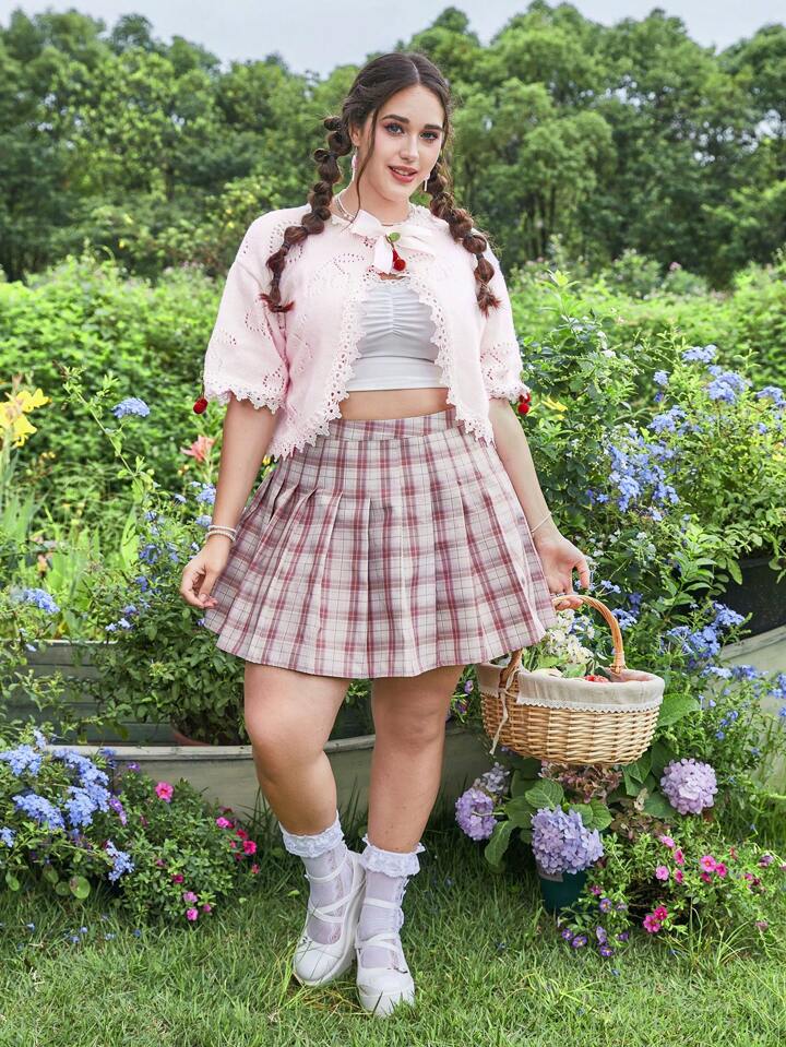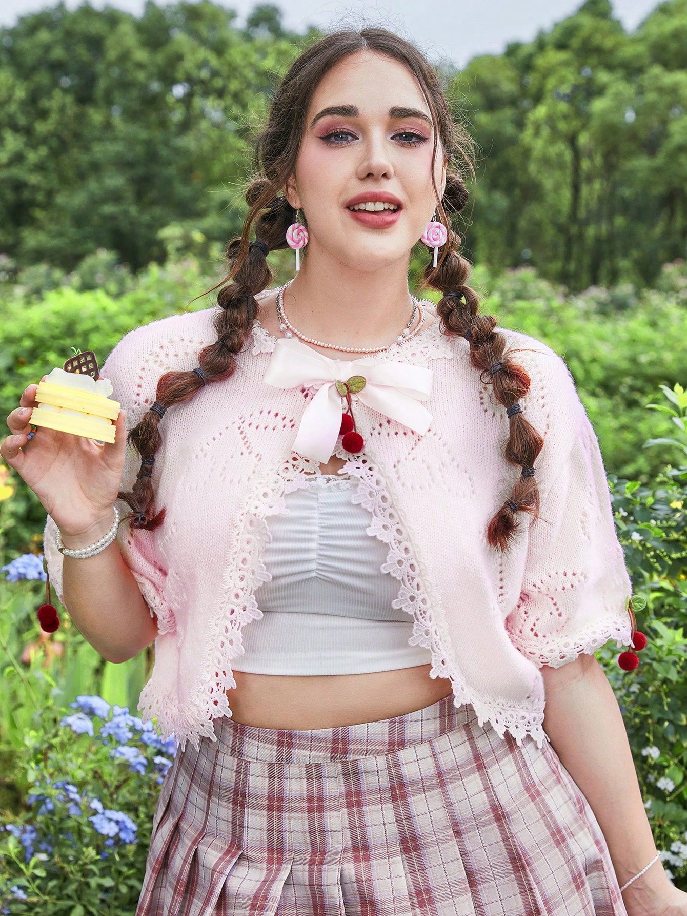 Kawaii Plus Contrast Lace Pointelle Knit Cardigan