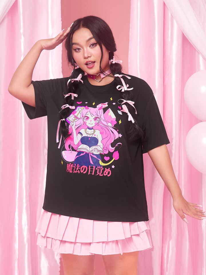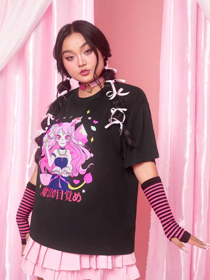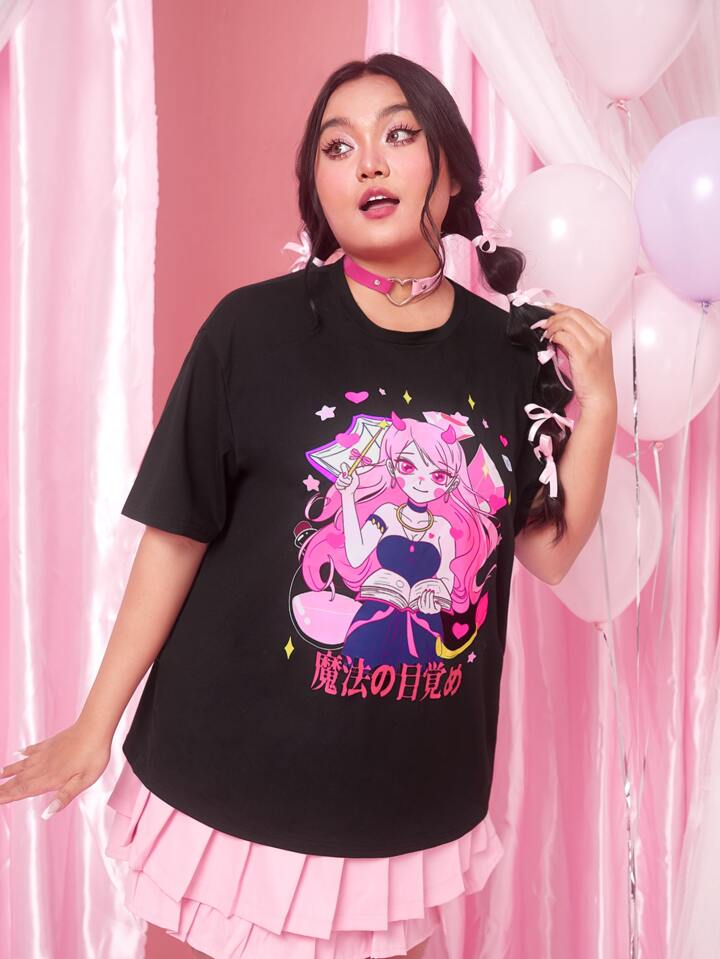 Kawaii Plus Figure Graphic Drop Shoulder Tee