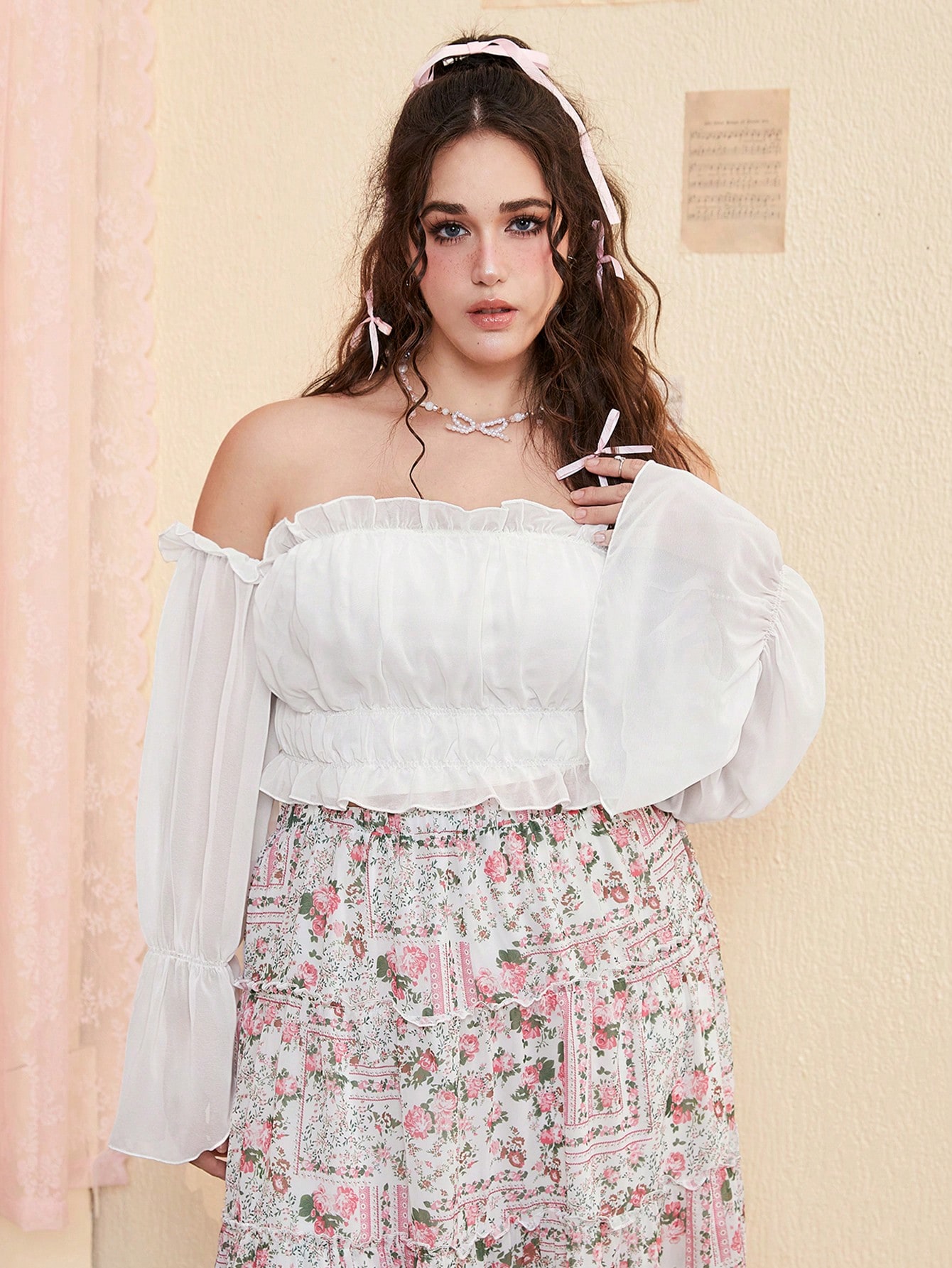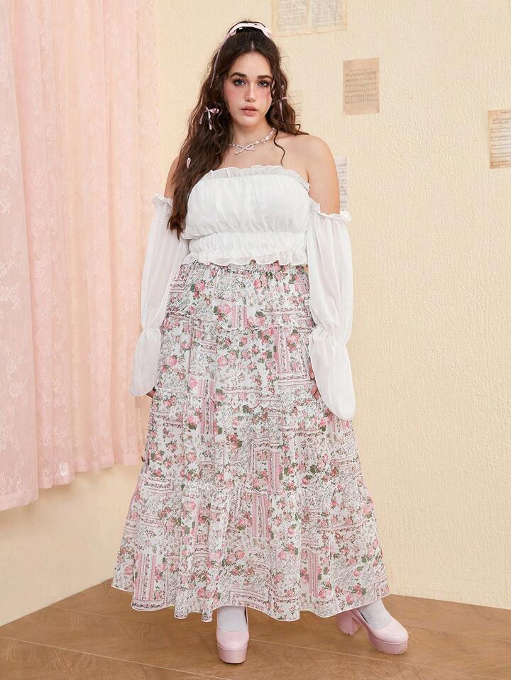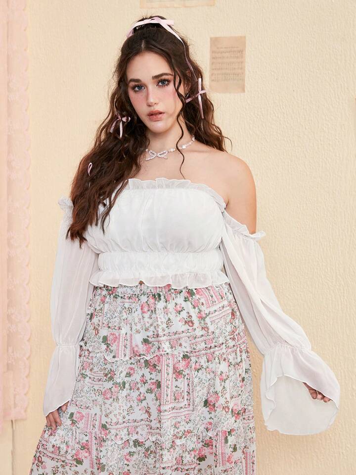 Kawaii Plus Off Shoulder Ruffle Hem Top