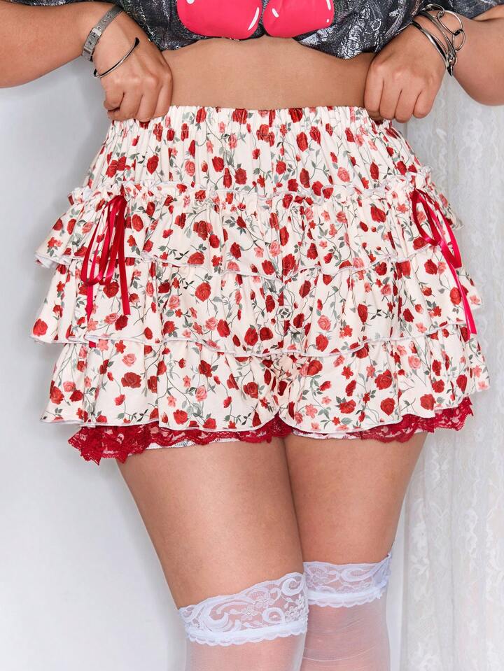 Kawaii Plus Size Floral Print Cake Skirt Shorts For Summer