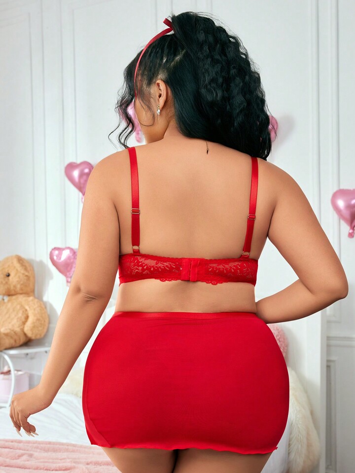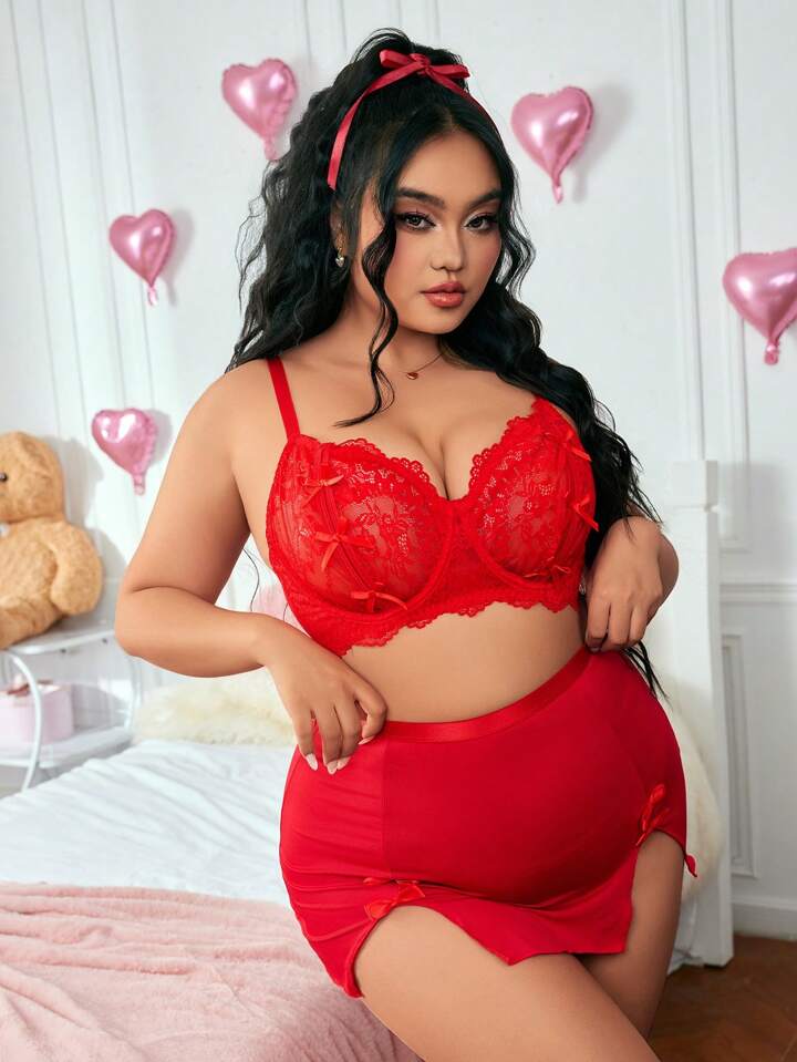 Kawaii Plus Size Lace & Mesh Hollow Bowknot Sexy Lingerie Set