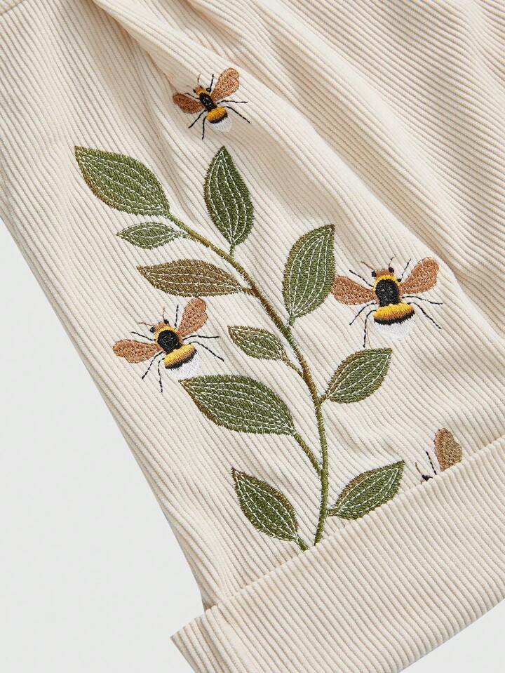Kawaii Plus Size Loose Casual Nature Themed Bee Embroidered Cuffed Hem Shorts