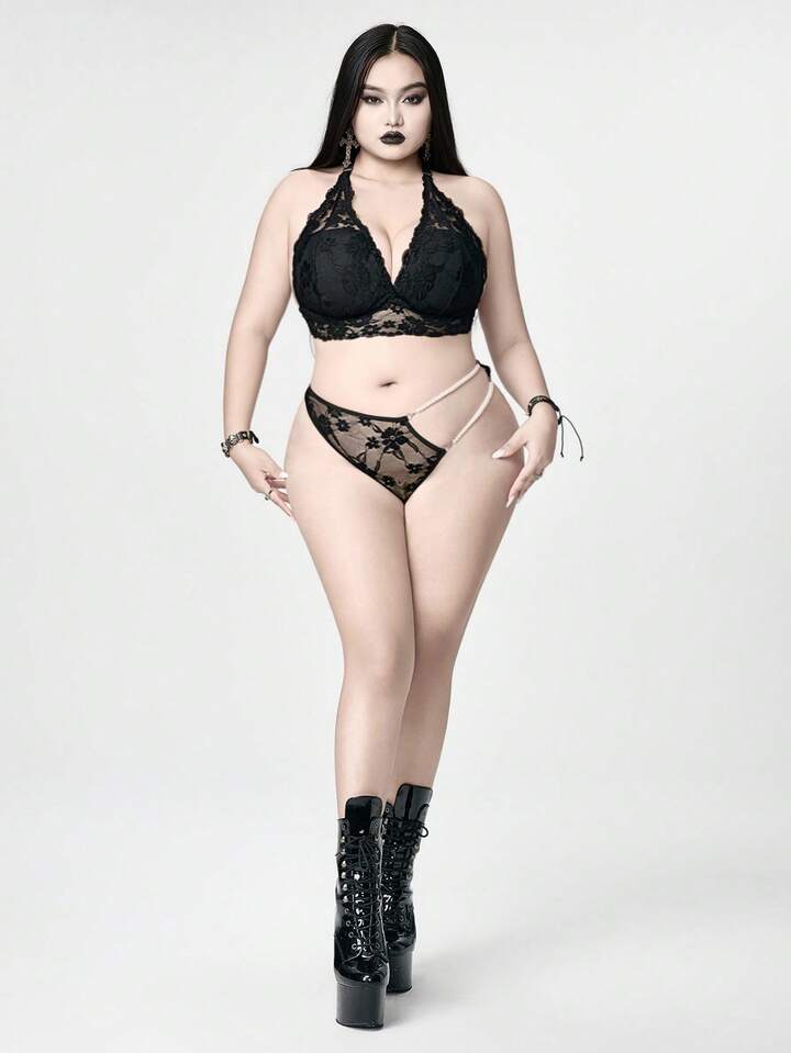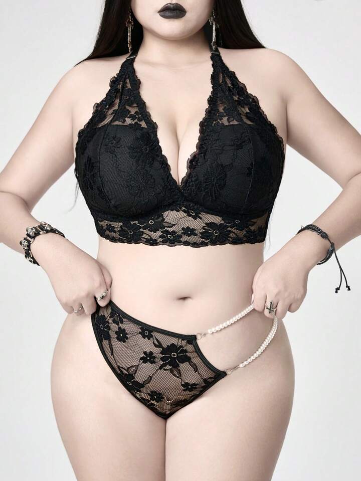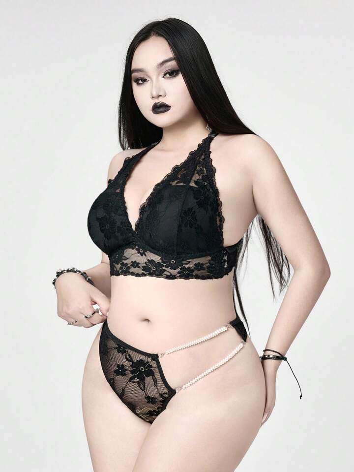 Kawaii Plus Size Sexy Pearl Chain Wireless Lingerie Set