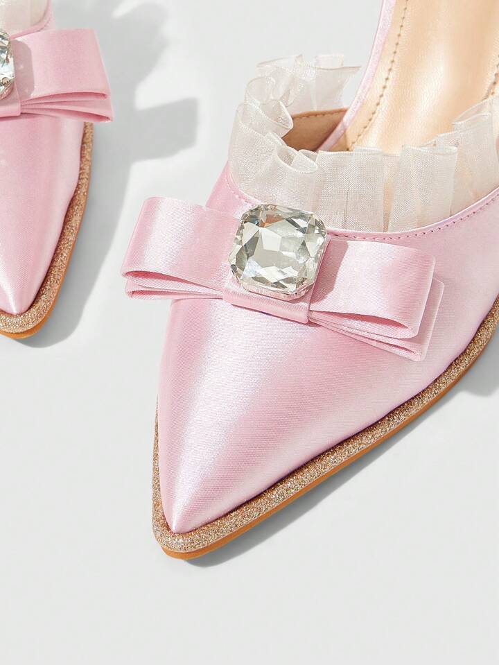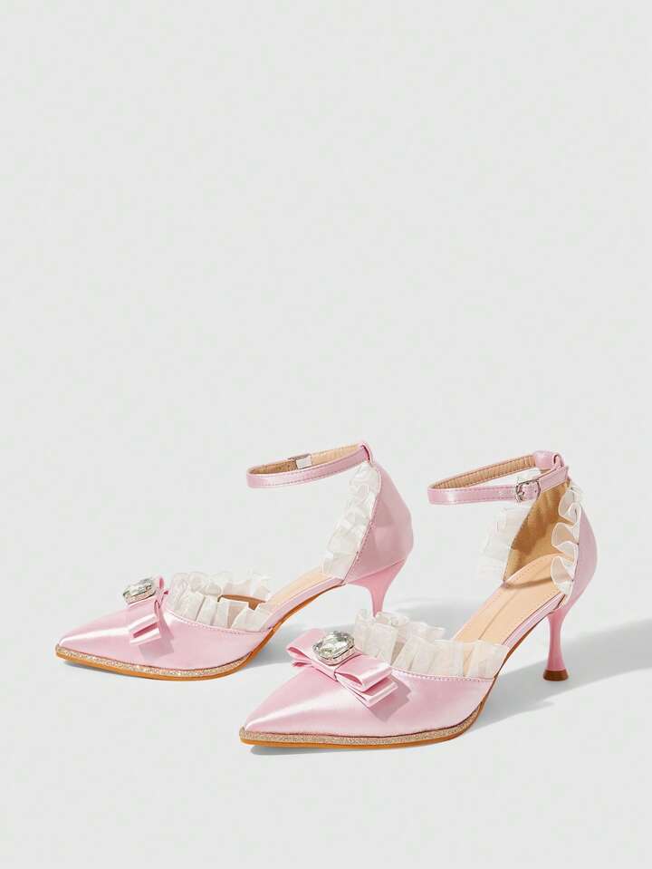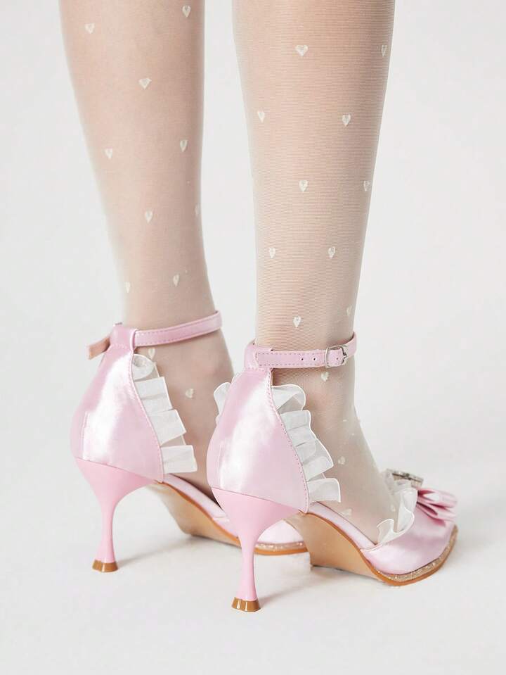 Kawaii Pointed Toe Stiletto High Heel Dress Shoes, Black Pleated Satin Material, Sexy Ladies Party Date Pumps
