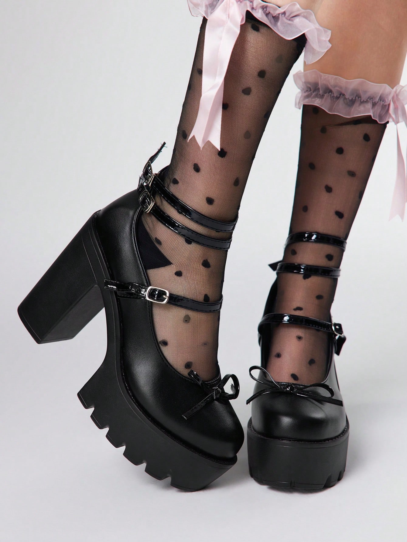 Kawaii Purple High Heel Closed Toe Chunky Heel Mary Jane Pumps With Waterproof Platform And Multi-Strap, Party Dress Shoes For Women For Christmas
