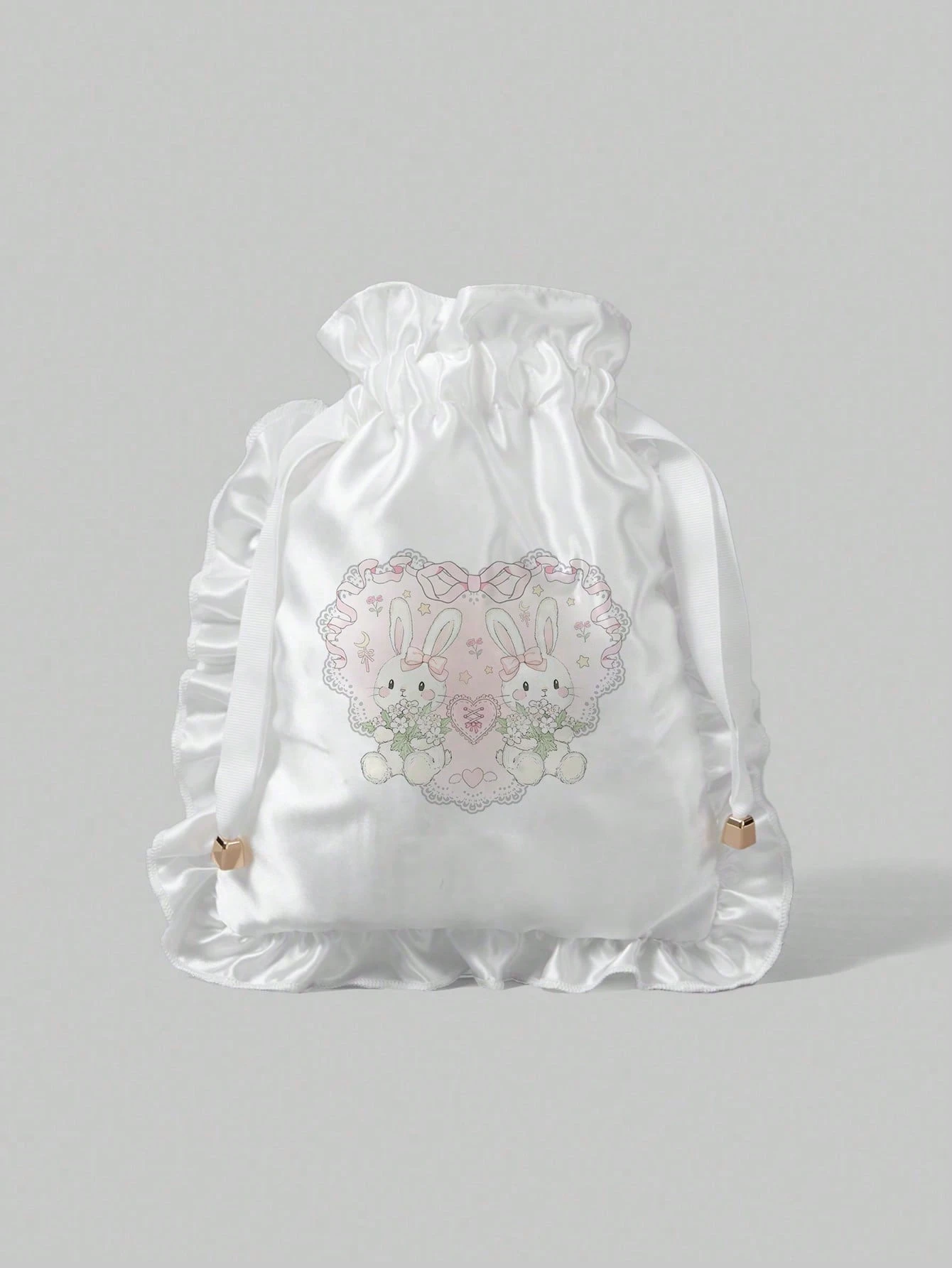 Kawaii Rabbit & Heart Pattern Makeup Bag,Portable Travel Lingerie & Underwear Storage Drawstring Pouch