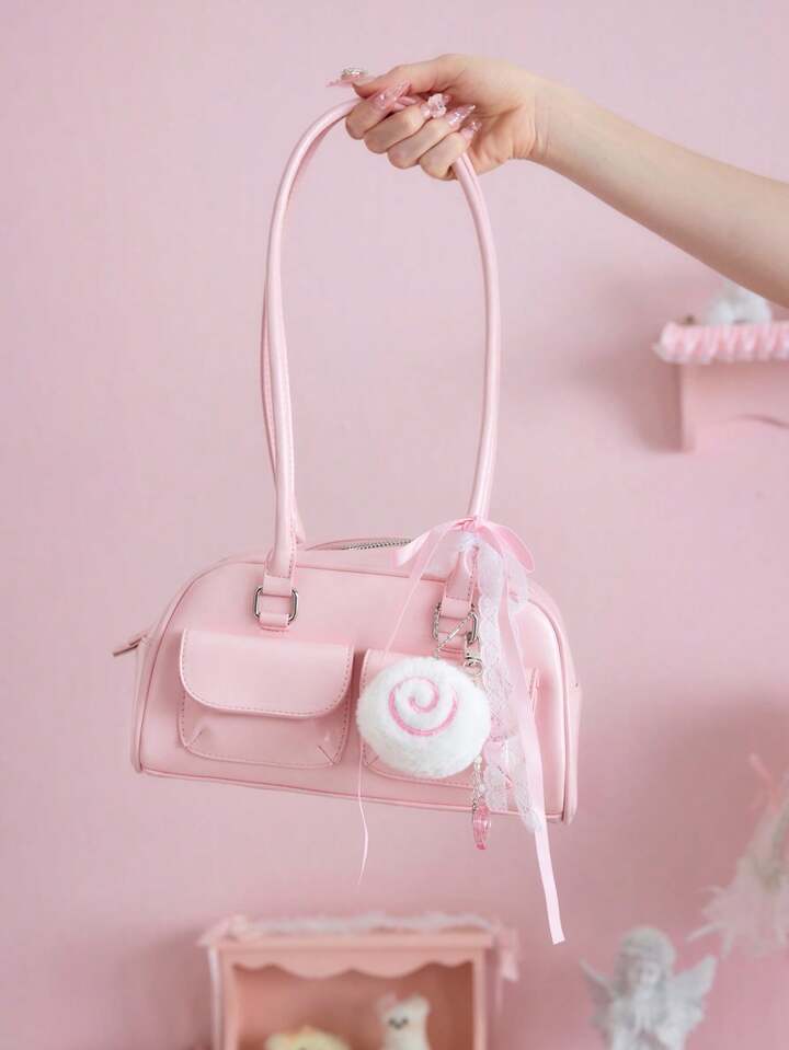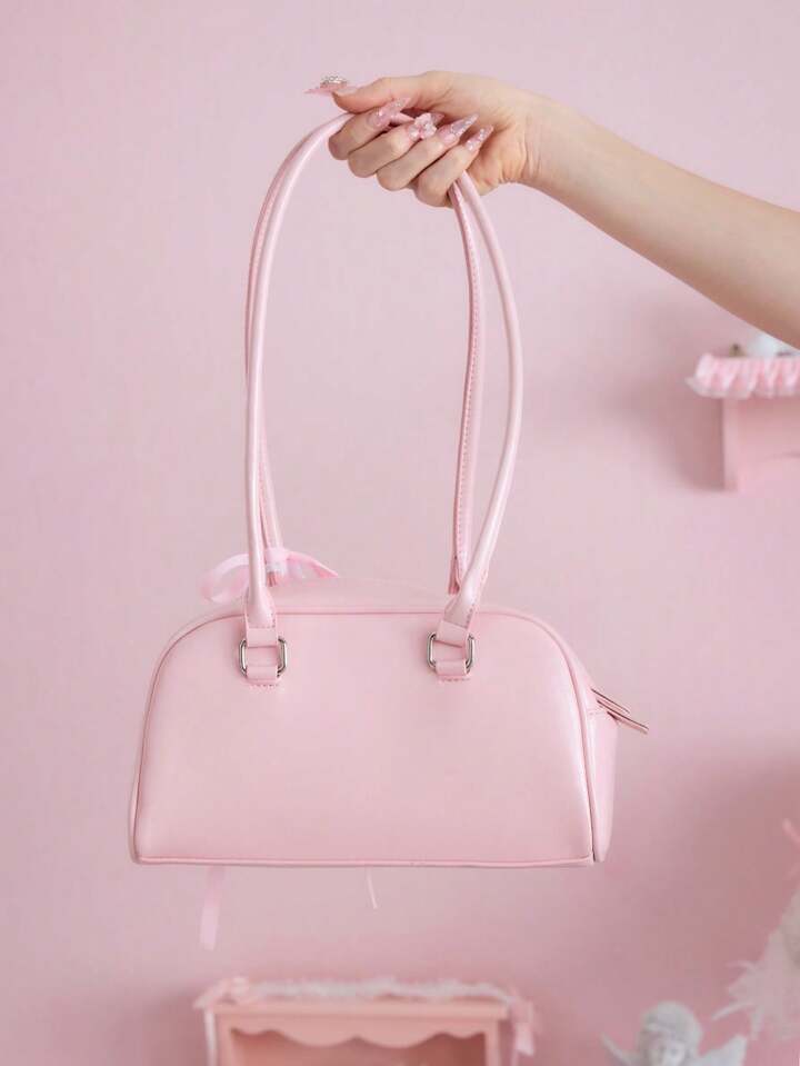 Kawaii Retro Cute Plaid Bowknot Strap Cherry Heart Decor Shoulder Underarm Bag, Multi Pockets Boston Shoulder Bag For Women