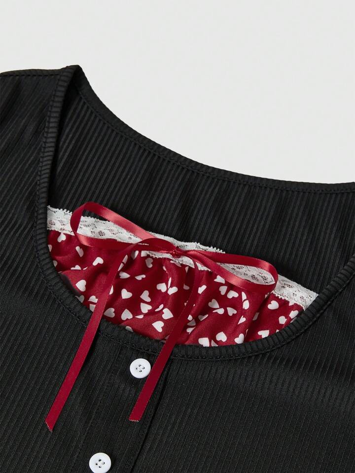 Kawaii Retro Sweet 2 In 1 Vintage Long Sleeve Women T-Shirt