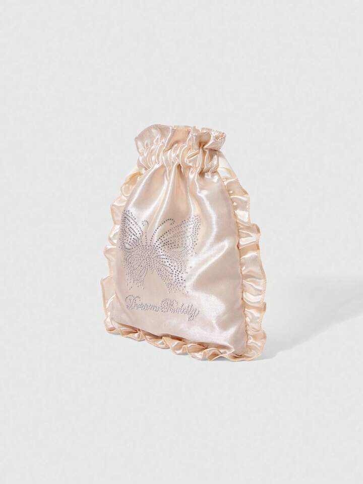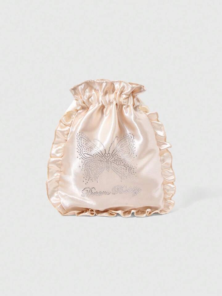 Kawaii Rhinestone Butterfly Travel Underwear Storage Drawstring Bag, Portable