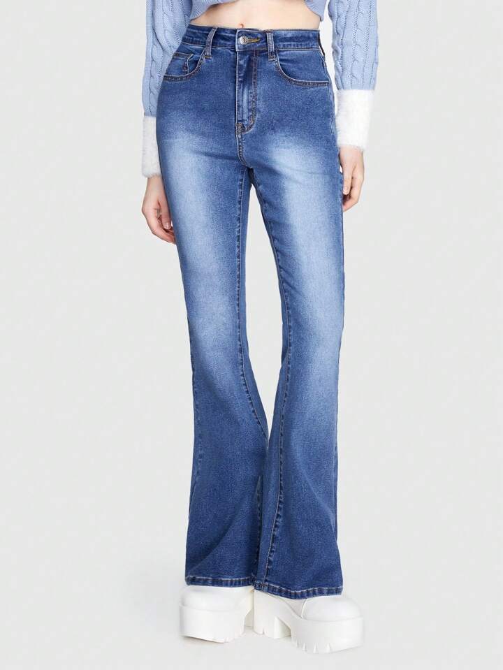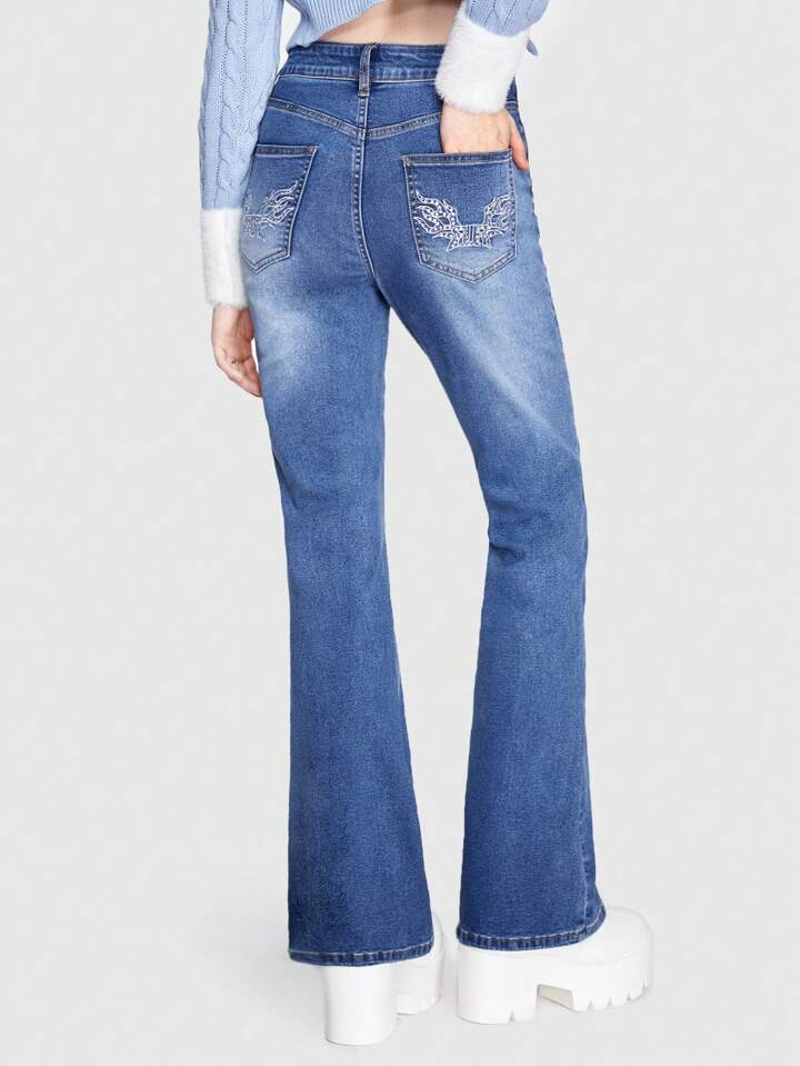 Kawaii Rhinestone Detail Flare Leg Jeans