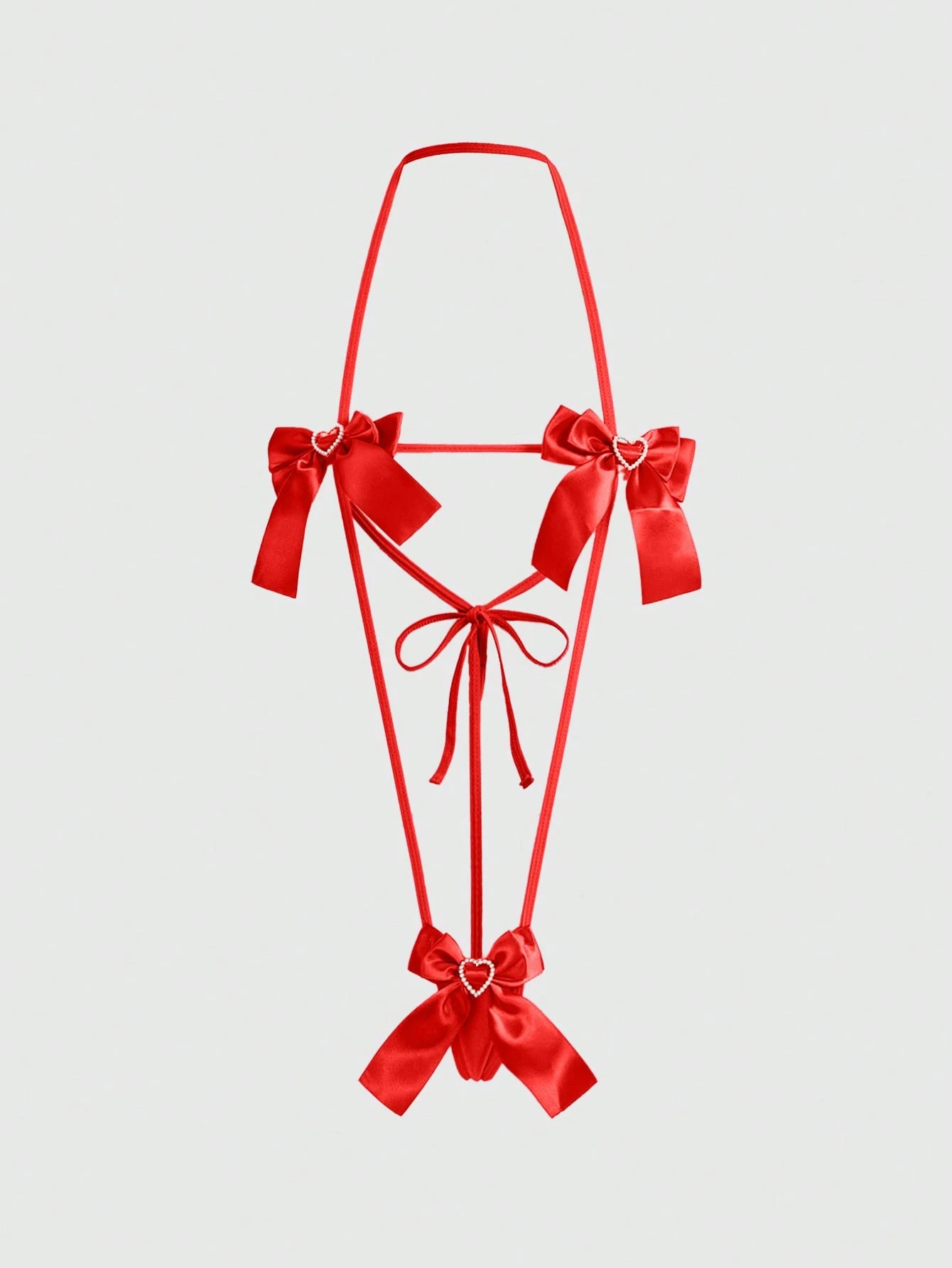 Kawaii Sexy Bowknot Heart Rhinestone Hollow Lace-Up Bodysuit For Women