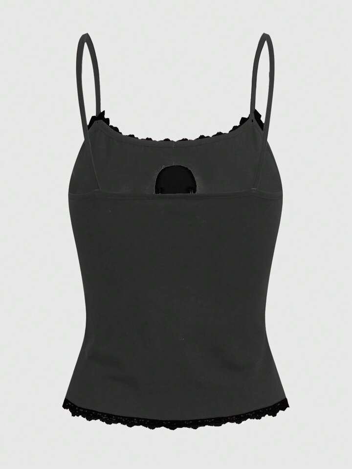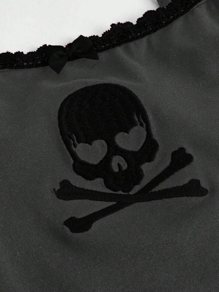 Kawaii Skull Print Contrast Lace Cami Top
