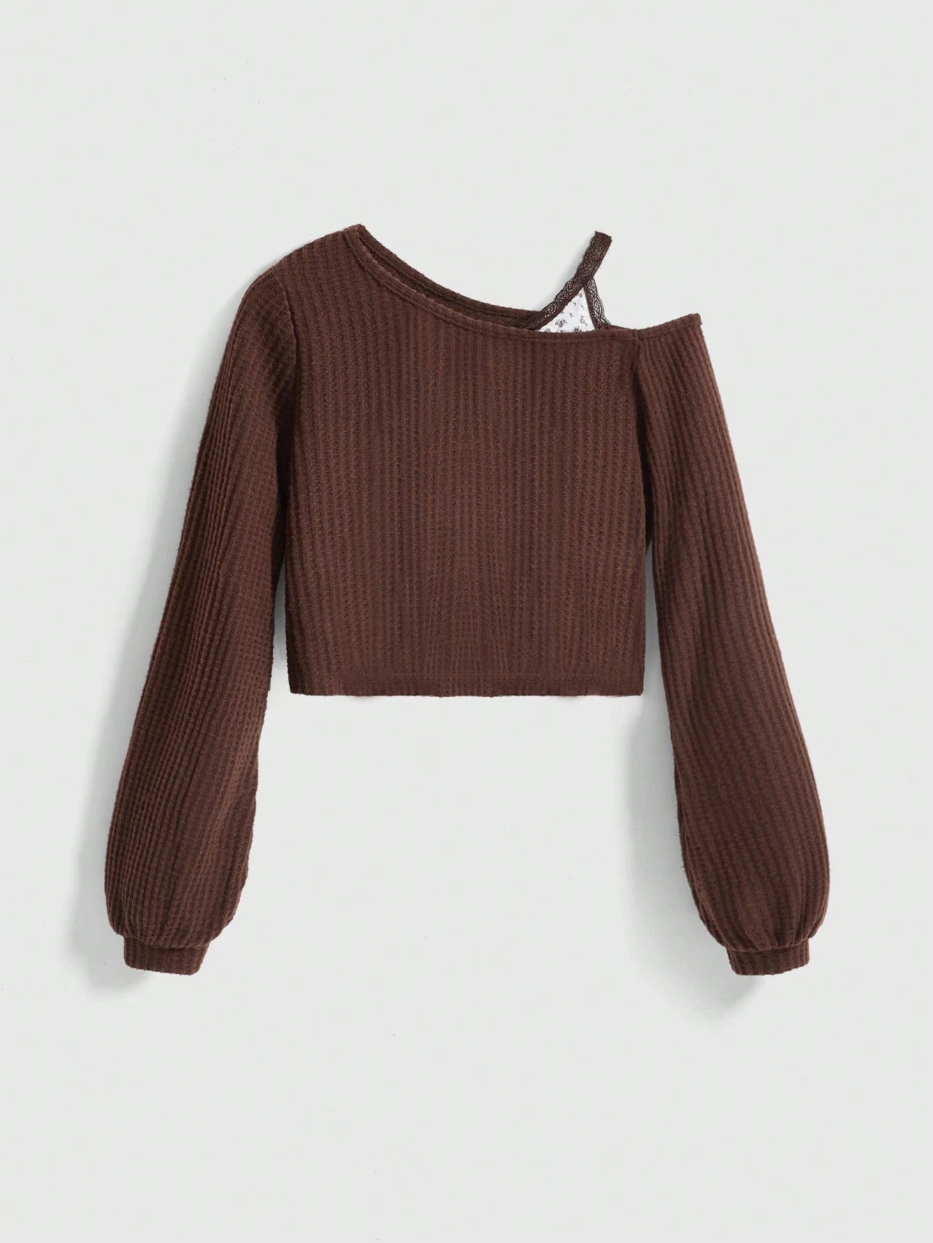 Kawaii Solid Color Lantern Sleeve Casual Waffle Knit Short T-Shirt