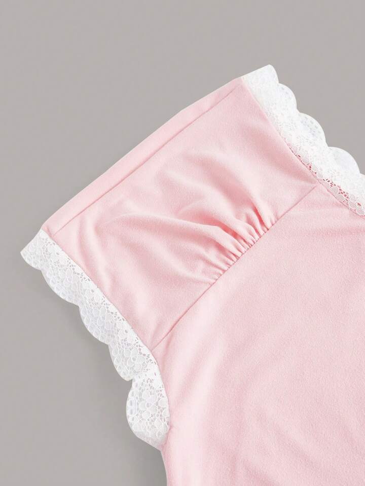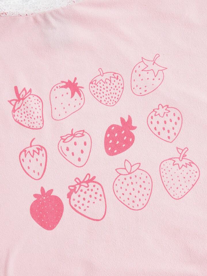 Kawaii Strawberry Graphic Contrast Lace Tee, Baby Tees Woman, School