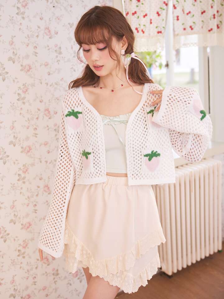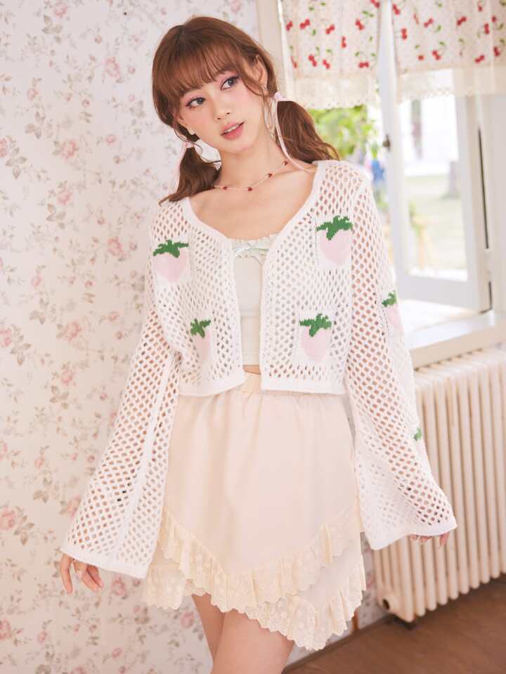 Kawaii Strawberry Pattern Pointelle Knit Cardigan
