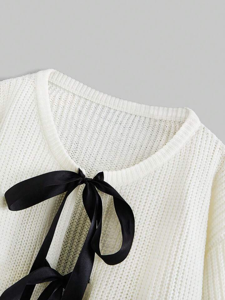 Kawaii Sweet & Lovely Lady Style Bowknot Decorated Silk Ribbon Women's Cardigan Sweater, School