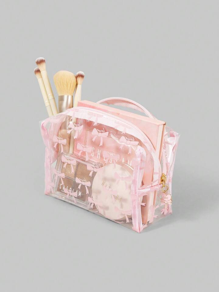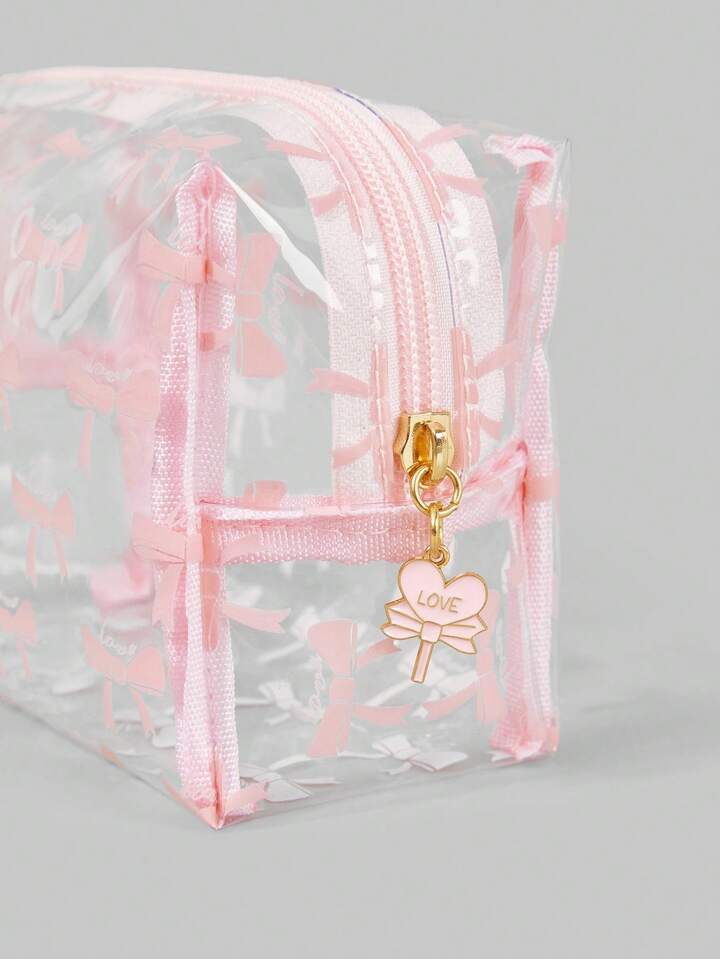 Kawaii Transparent Fashion Cartoon Bowknot Large Capacity Portable Women Organizer Makeup Bag 946665