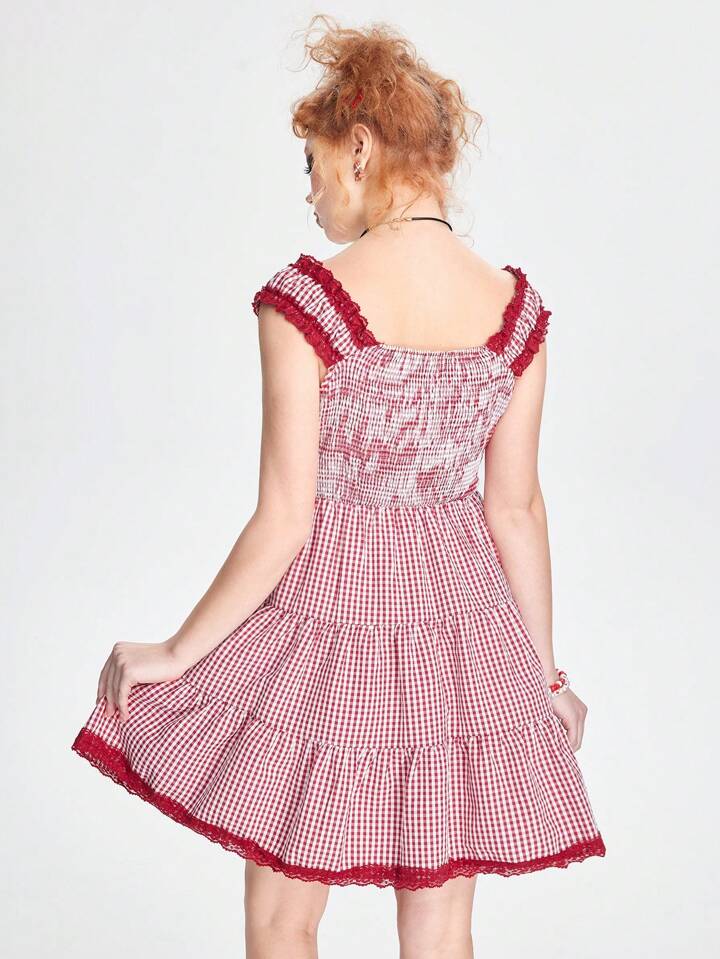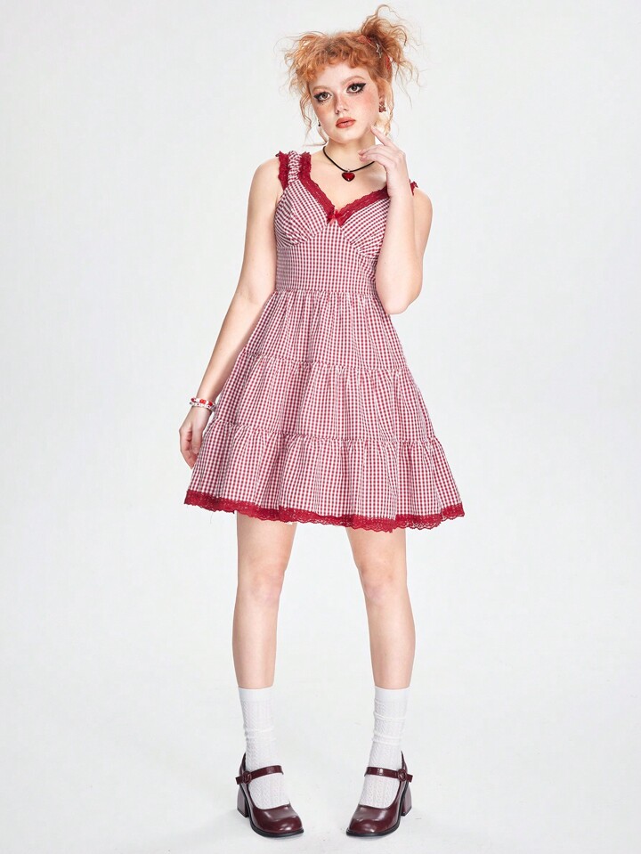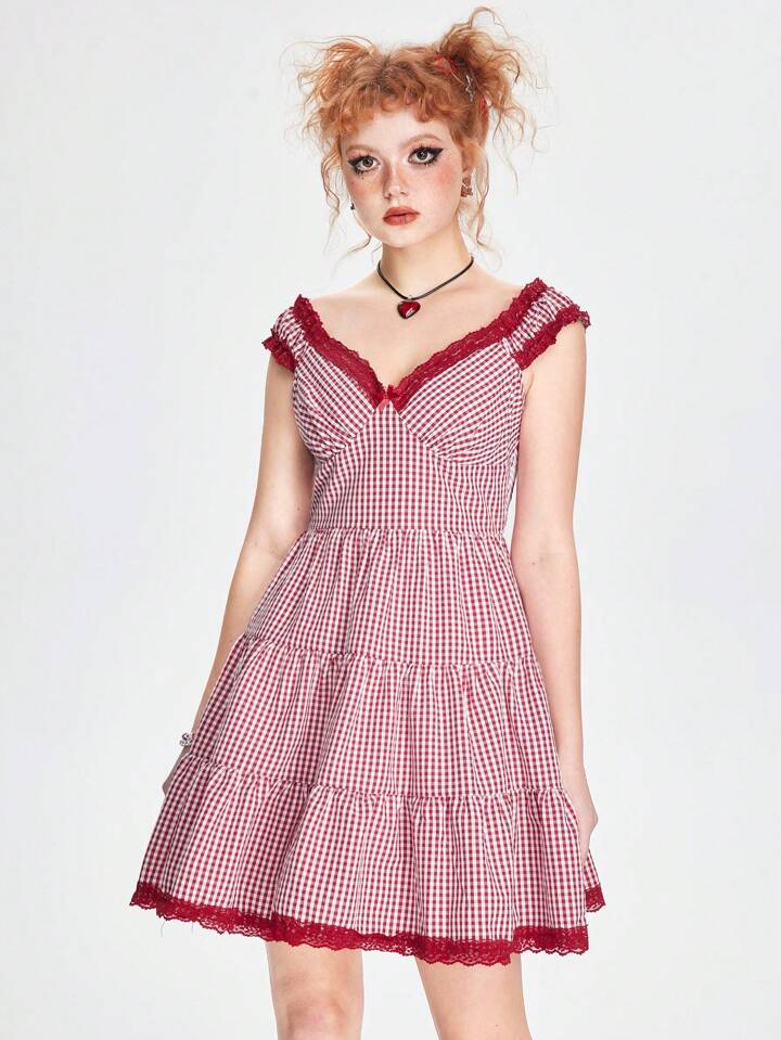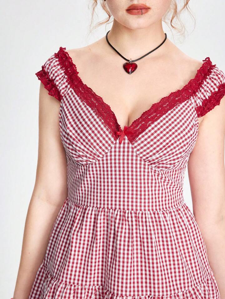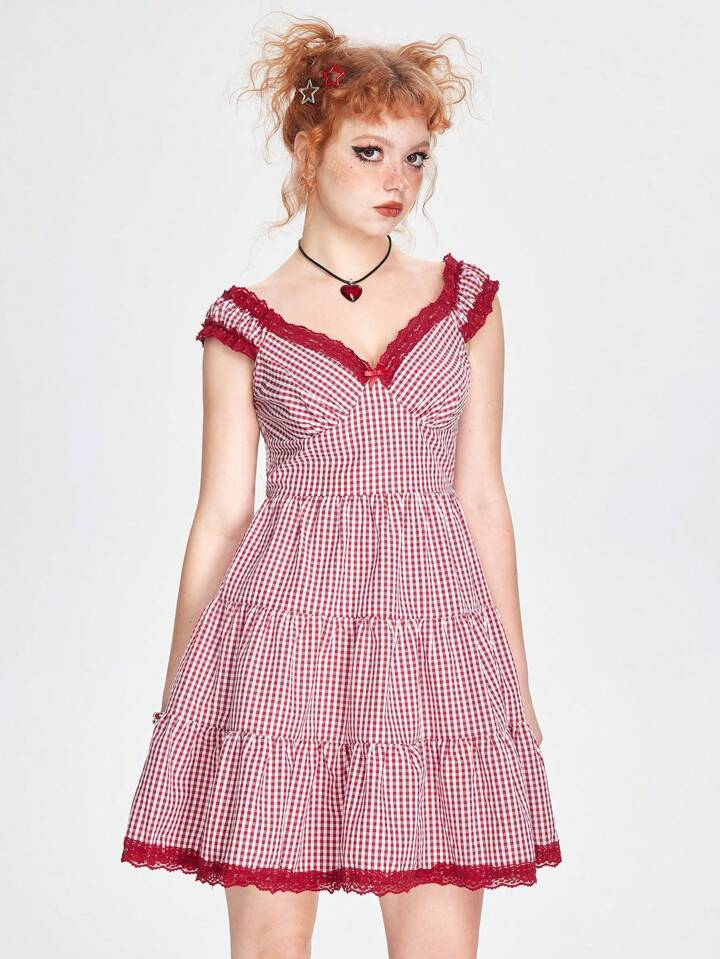 Kawaii Two Tone Lace Splicing Wrap Style Dress With Ruffle Hem