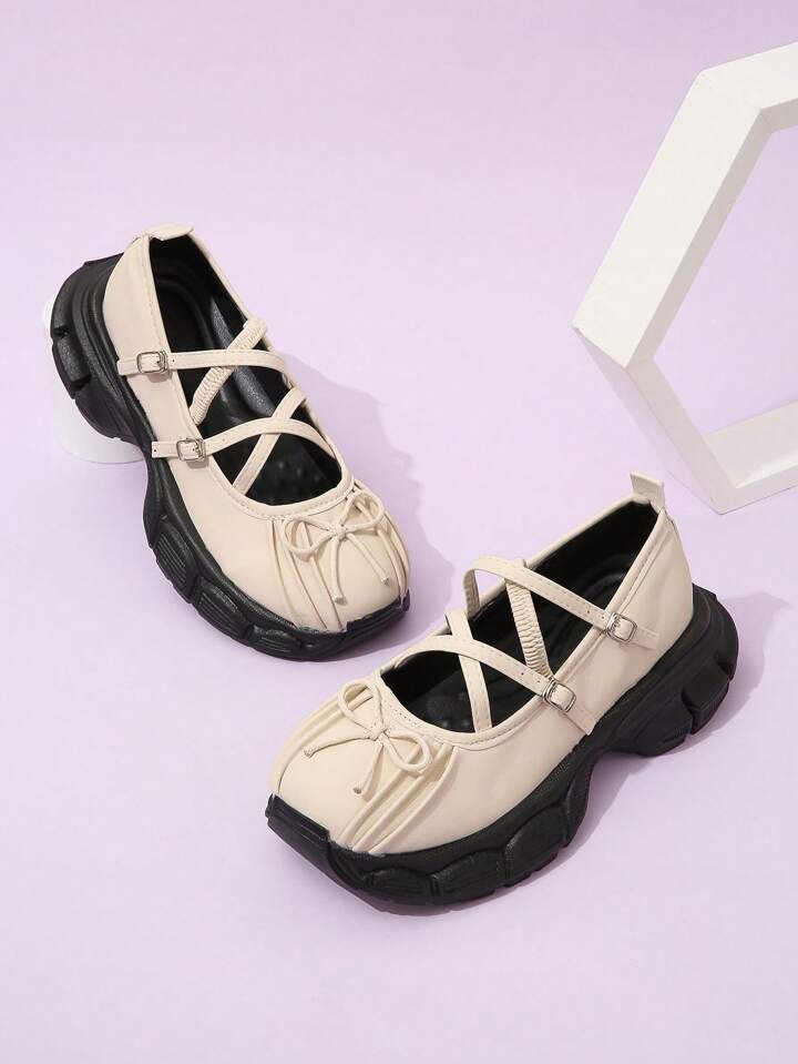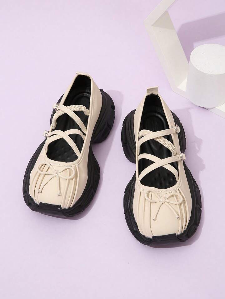 Kawaii Women Bow Decor Mary Janes, Casual Outdoor Shoes Fall New Year Holiday Valentines