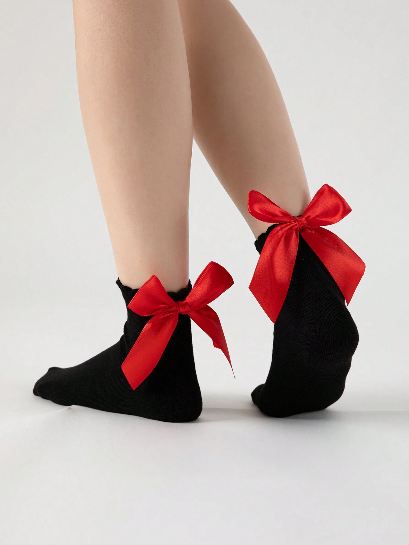 Kawaii Women Bow Decorated Cute Mid-Calf Socks, Christmas