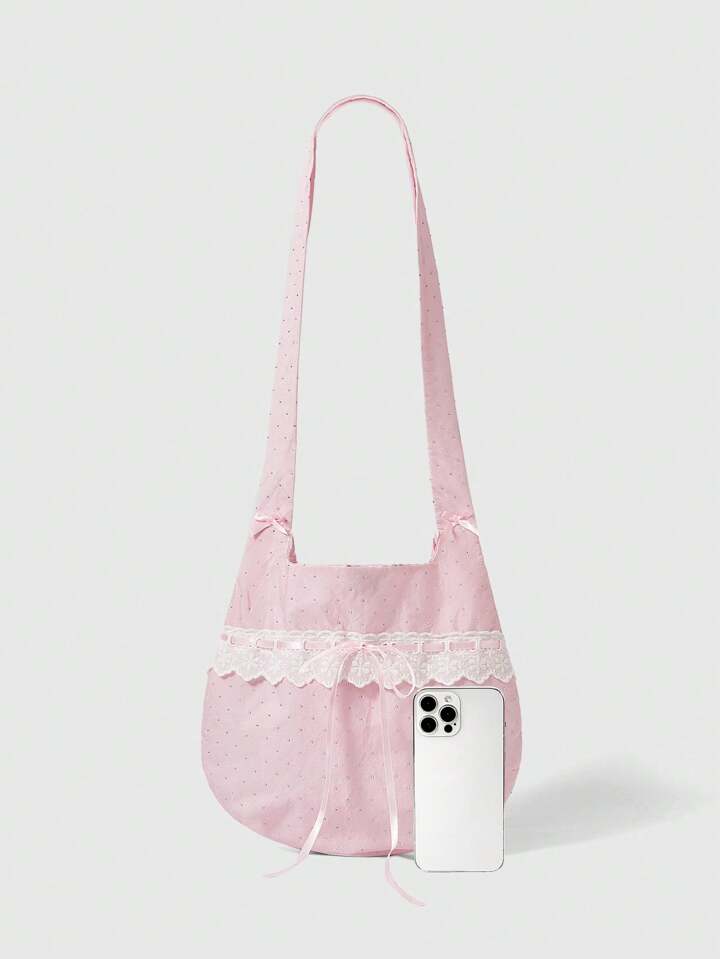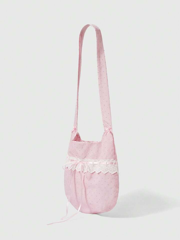 Kawaii Women Lace Patchwork Simple Handbag, Daily Casual Purse
