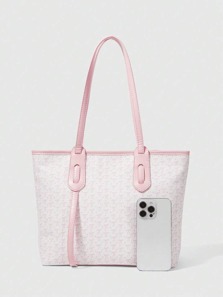 Kawaii Women Large Capacity Bow Decor Tote Bag, Suitable For Daily Commute