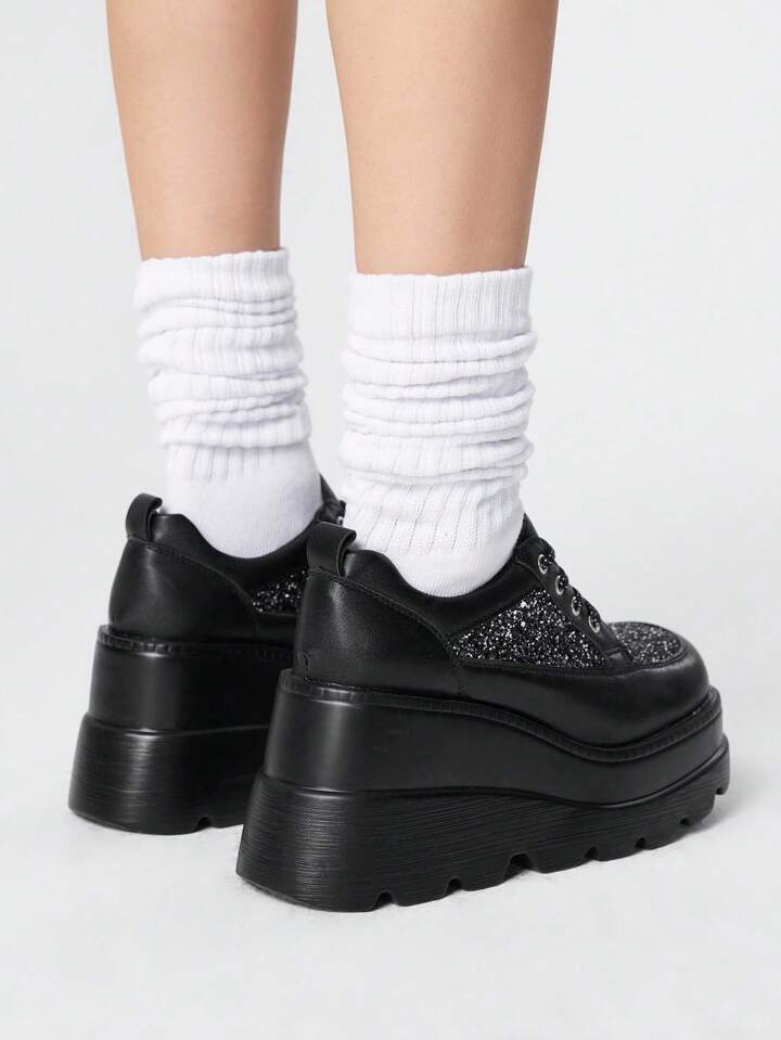 Kawaii Women's 2024 Spring/Autumn College Style White Casual Lace-Up Mesh Breathable Platform Sports Sneakers