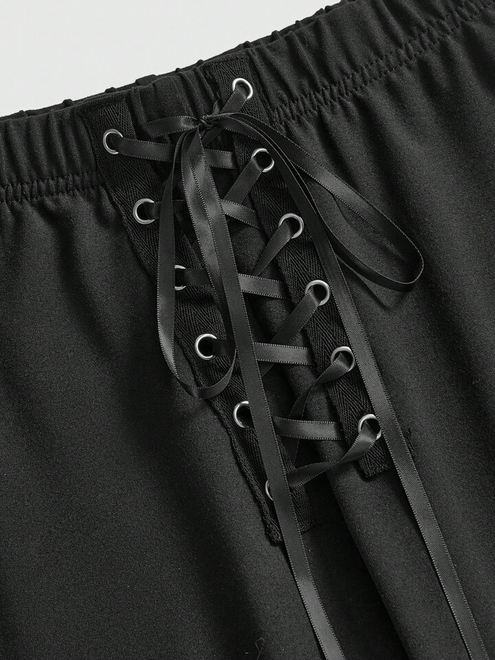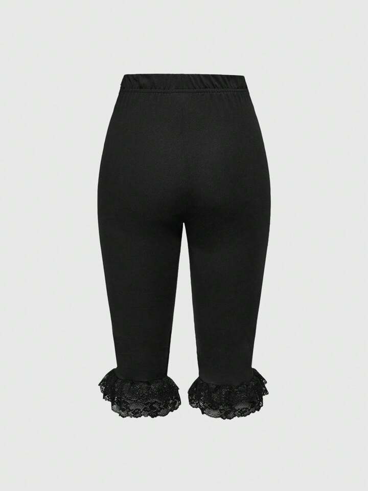 Kawaii Women's Basic Y2K Millennium Style Lace Patchwork Tie Up Capri Pants