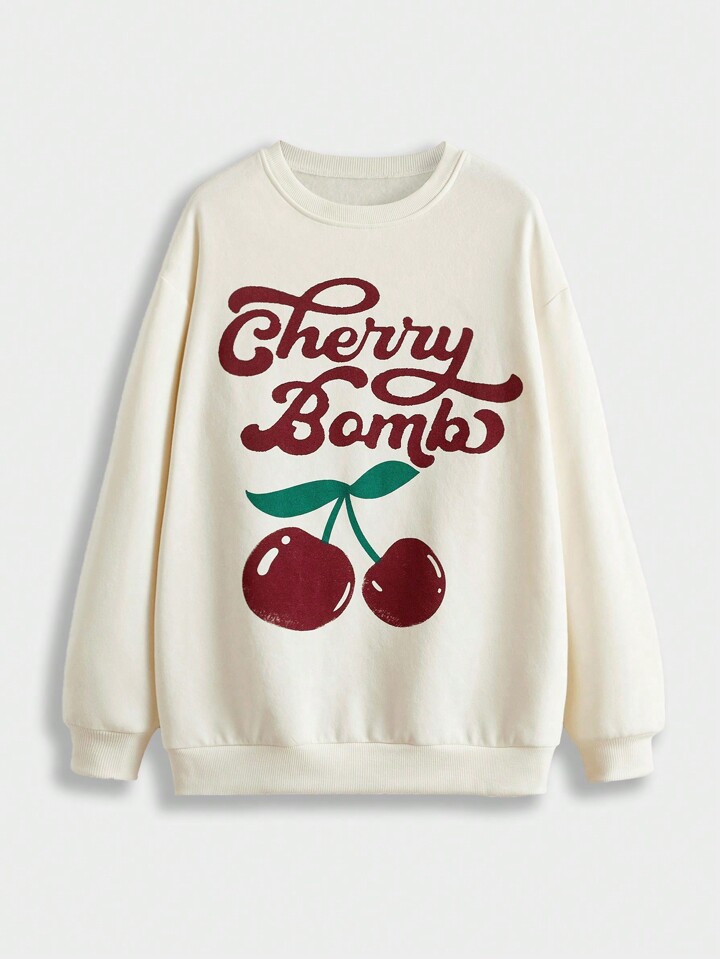 Kawaii Women's Cherry Print Fleece Sweatshirt