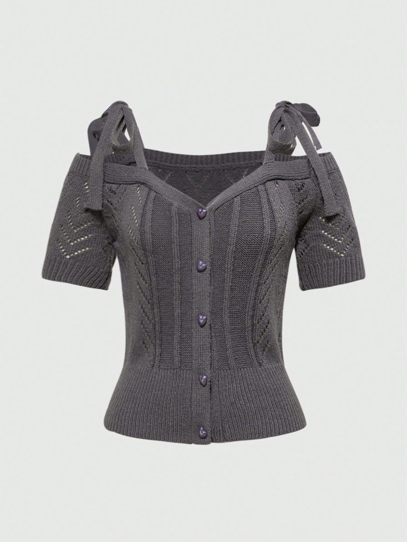 Kawaii Women's Cute Bowknot Decor Off-Shoulder Crop Knit Top, Sweet Style
