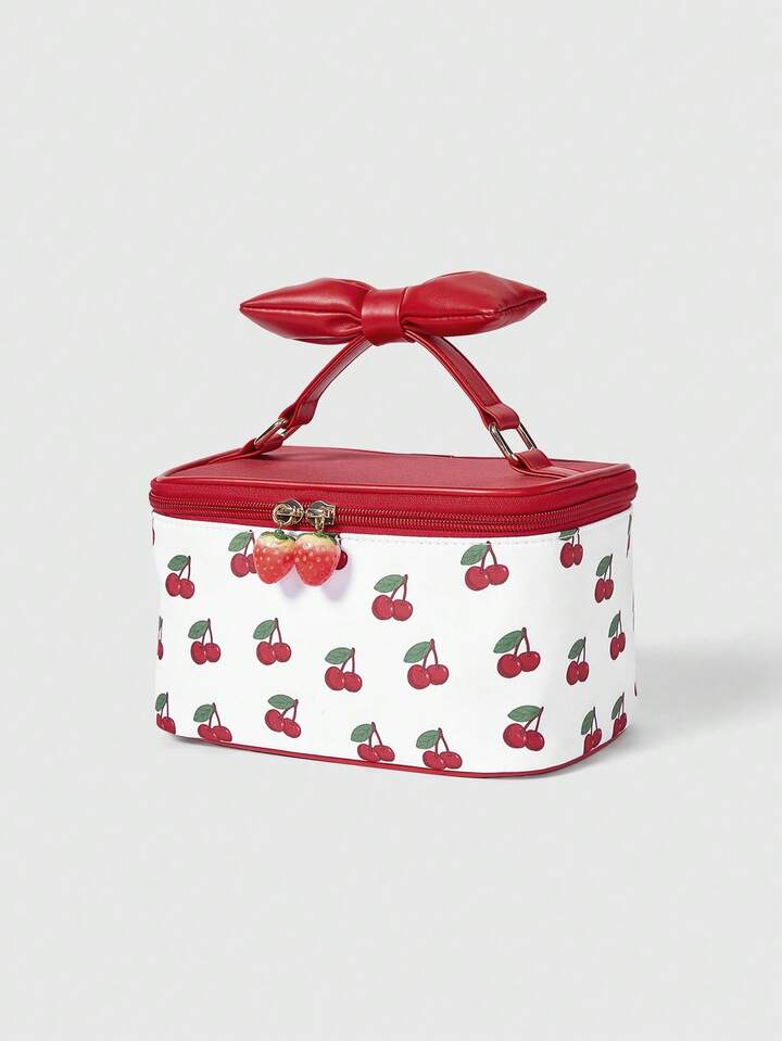 Kawaii Women's Cute Padded Bow Handheld Portable Makeup Bag, Suitable For Traveling And Carrying Out