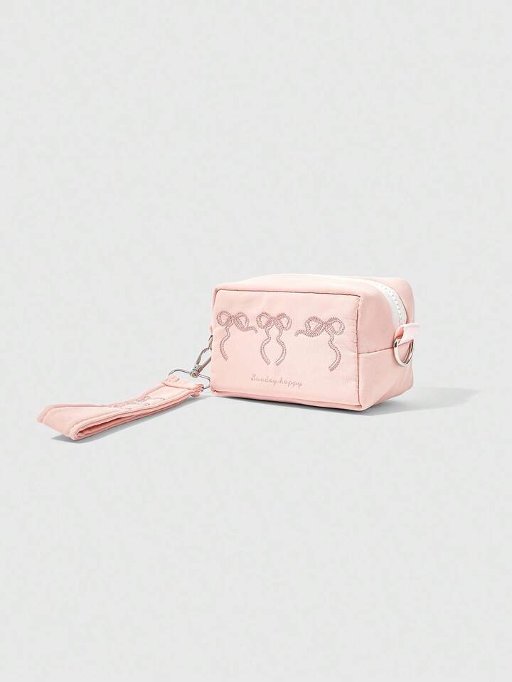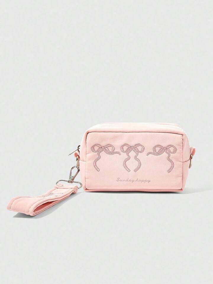 Kawaii Women's Cute Pink Bow Embroidered Camera Portable Handheld Makeup Bag