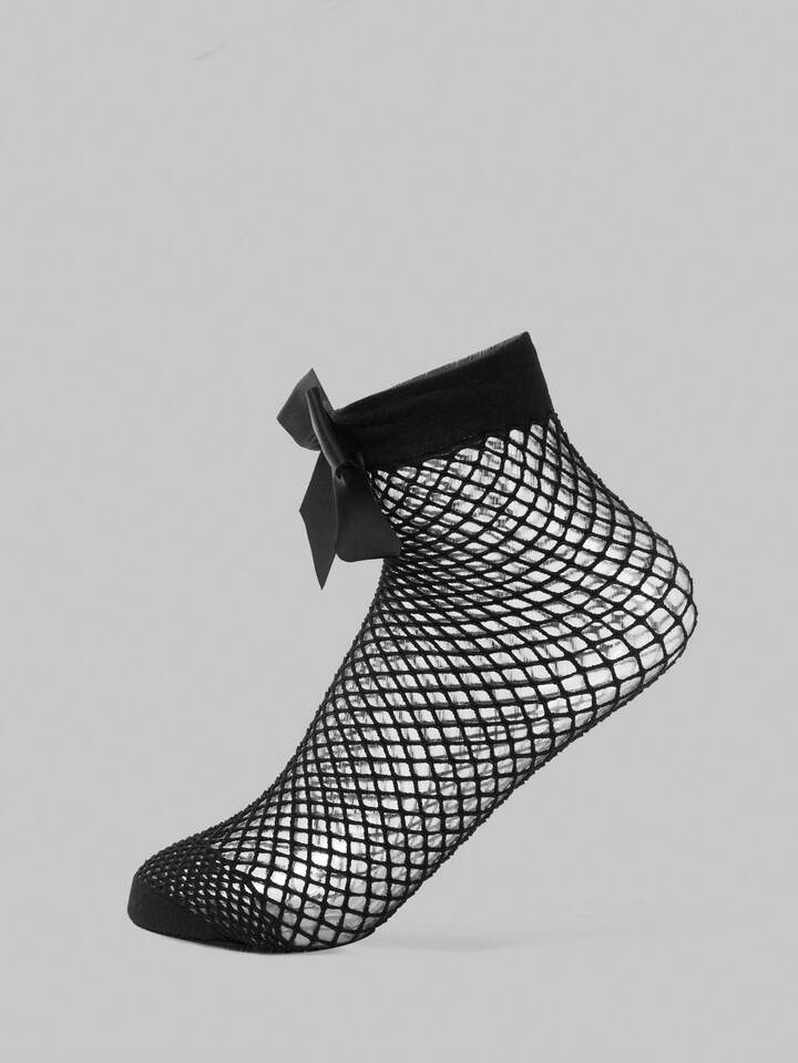 Kawaii Women's Fashion Mesh Bow Decor Mid-Calf Socks