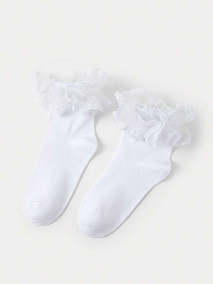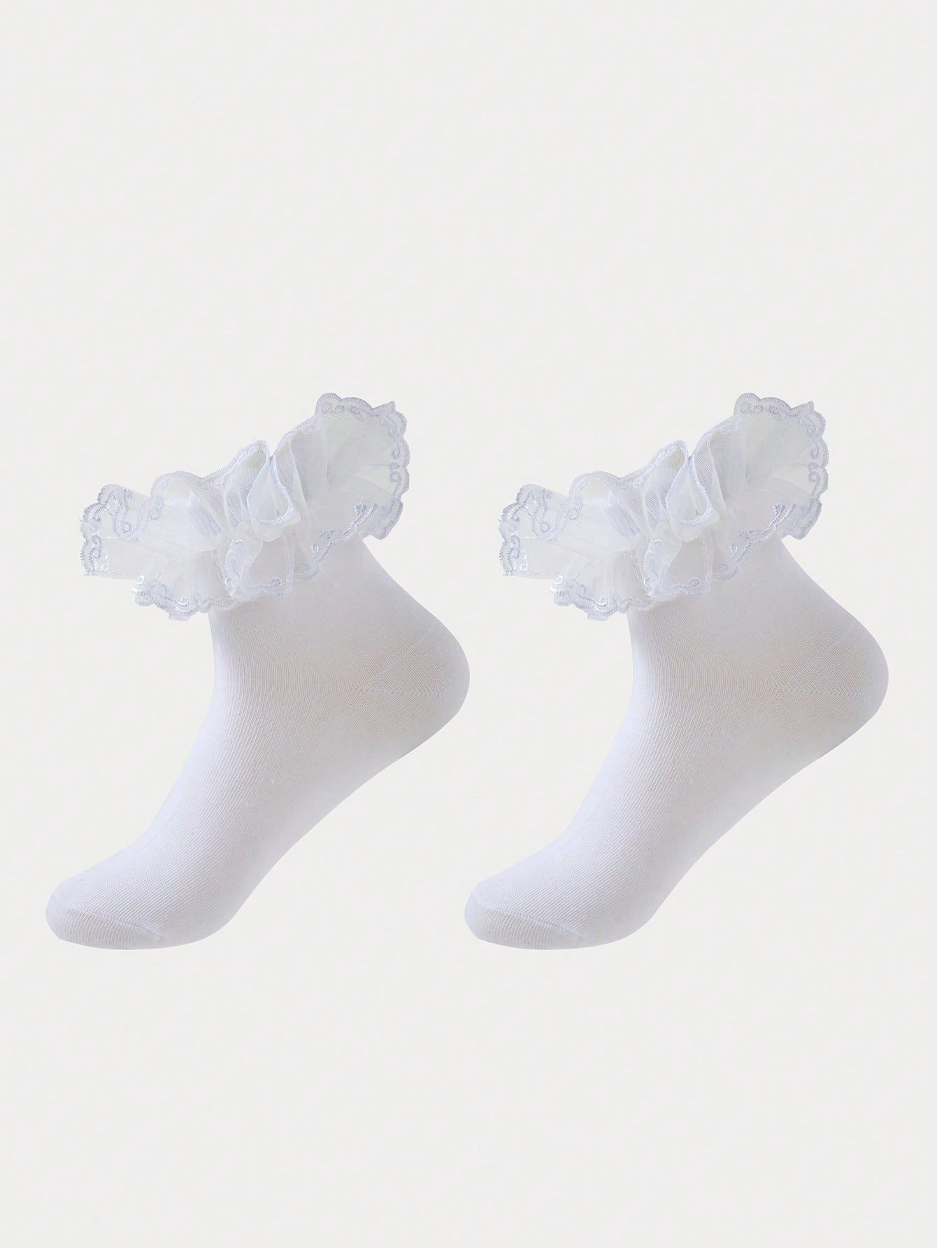 Kawaii Women's Fashionable Mid-Calf Socks With Hollow Ruffled Design