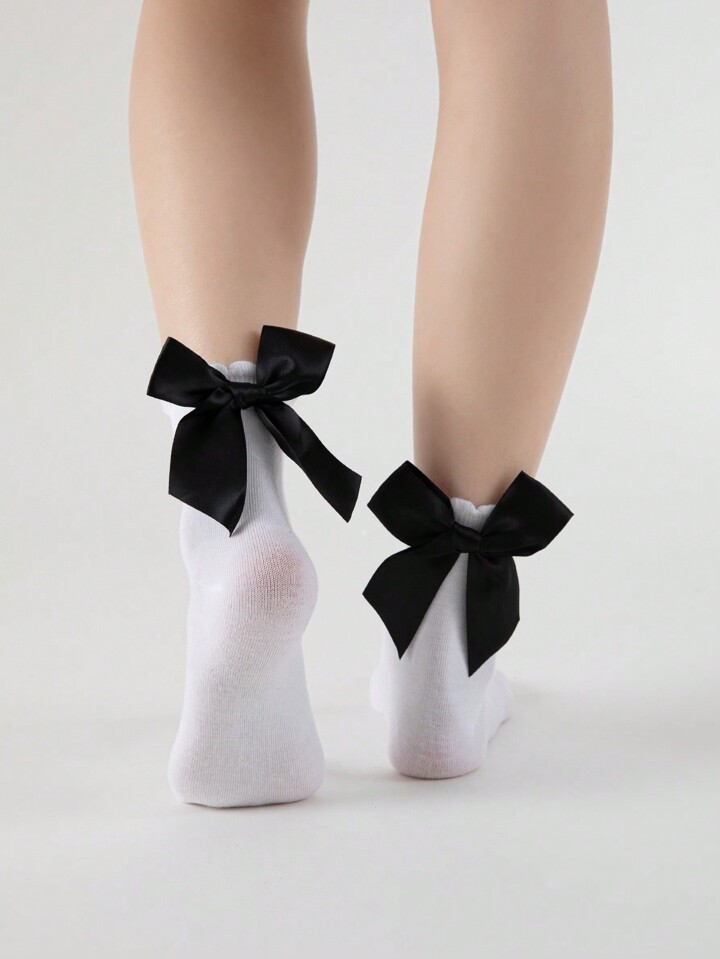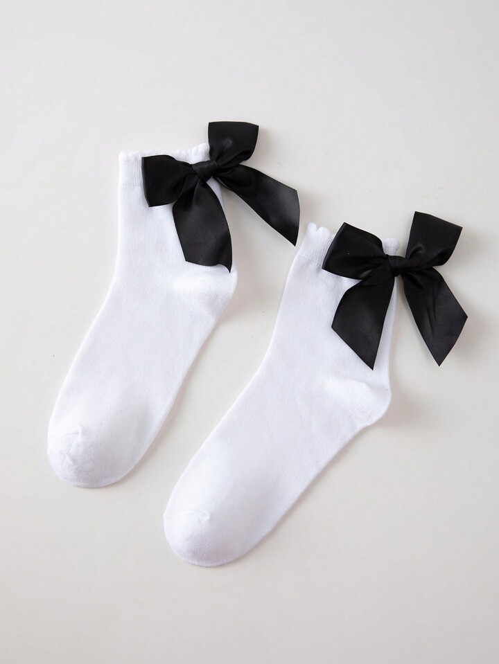 Kawaii Women's Fashionable & Sweet Bow Decor Mid-Calf Socks