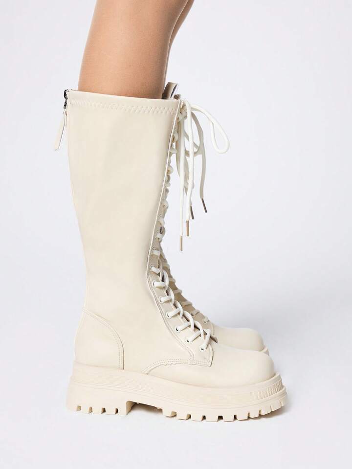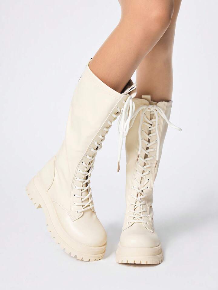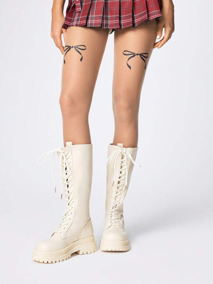 Kawaii Women's Knee-High Boots Fashionable Lace-Up Thick-Soled Chunky Heel Women's Boots